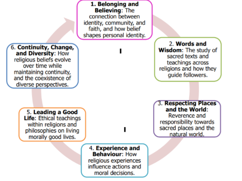 provoke challenging questions about the meaning and purpose of life, beliefs, the self, and issues of right and wrong, commitment and belonging. encourage pupils to explore their own beliefs (religious or non-religious), in the light of what they learn, as they examine issues of religious belief and faith and how this impacts on personal, institutional, and social ethics; and to express their responses.