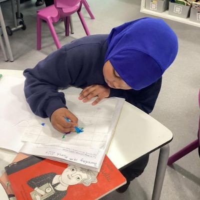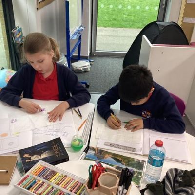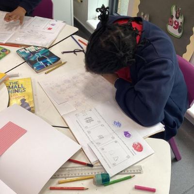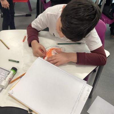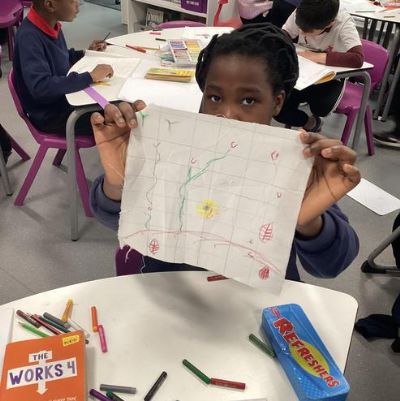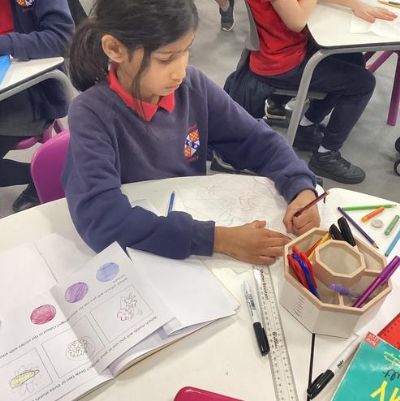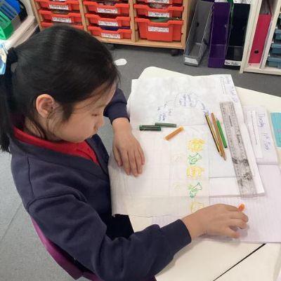 We made a design on fabric based on William Morris' style in DT