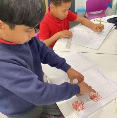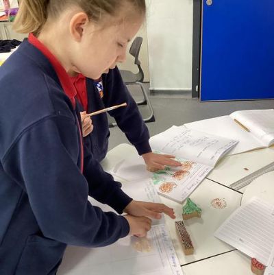 In D&T, we created our own William Morris inspired block printed pattern