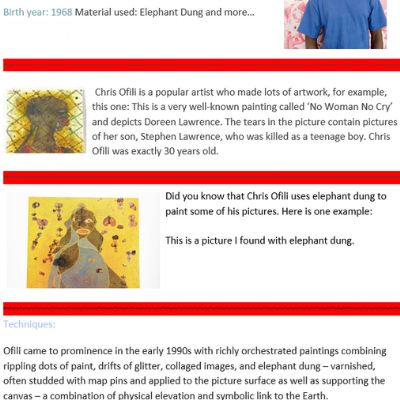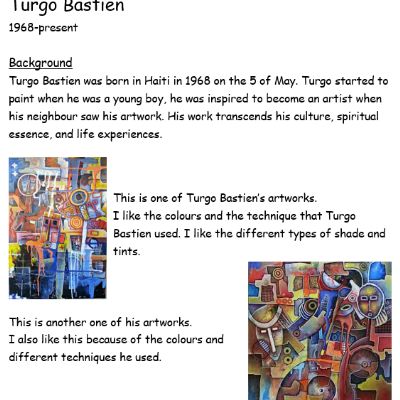 In Art, we have been looking at the work of many prominent black artists, focusing on Chris Ofili and Turgo Bastien.