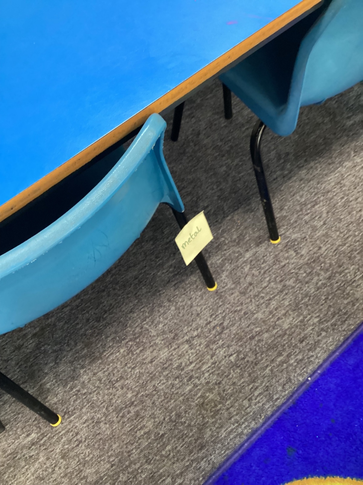 In our science lesson we have been learning all about materials. We went on a material hunt in the classroom.