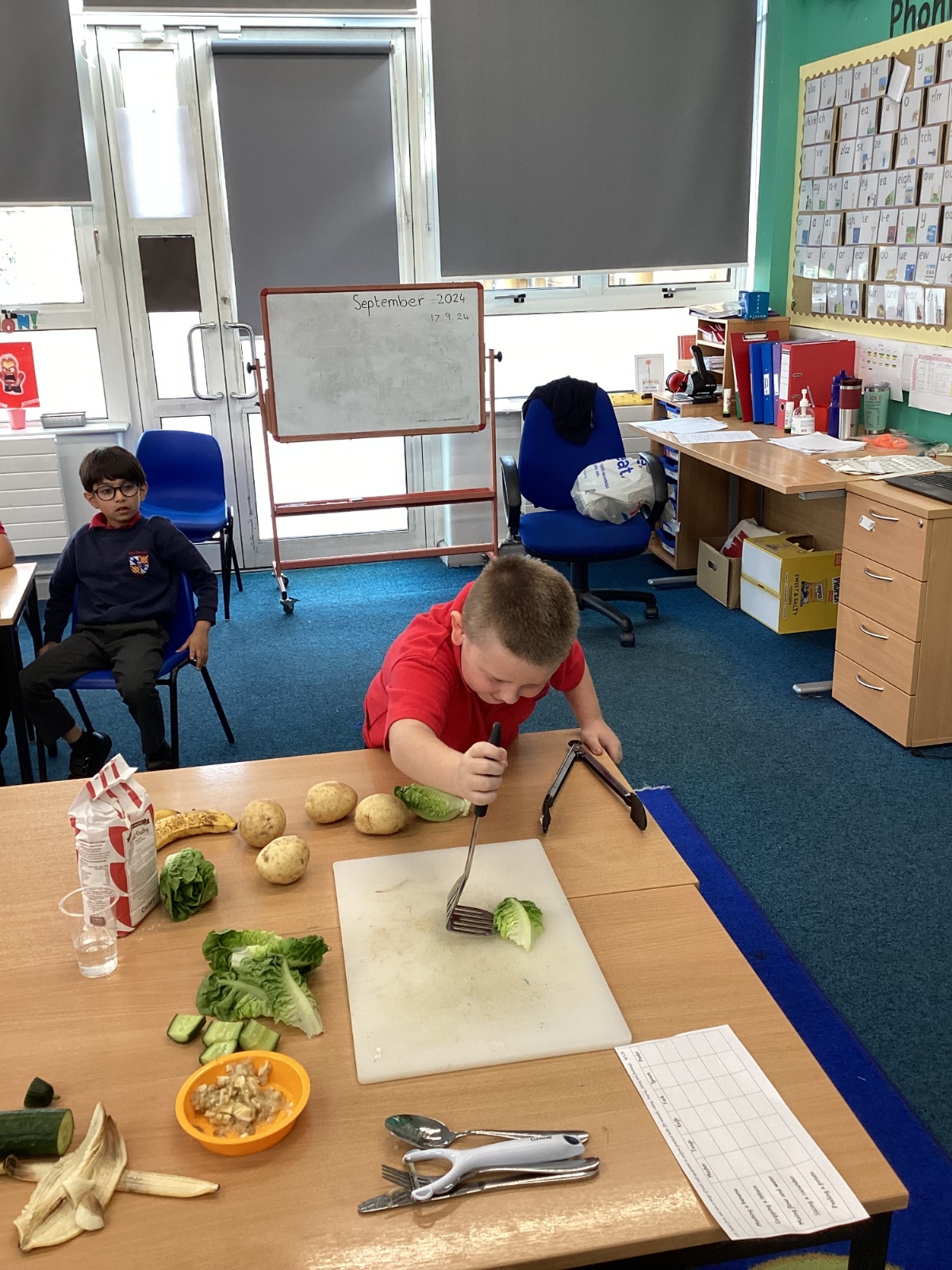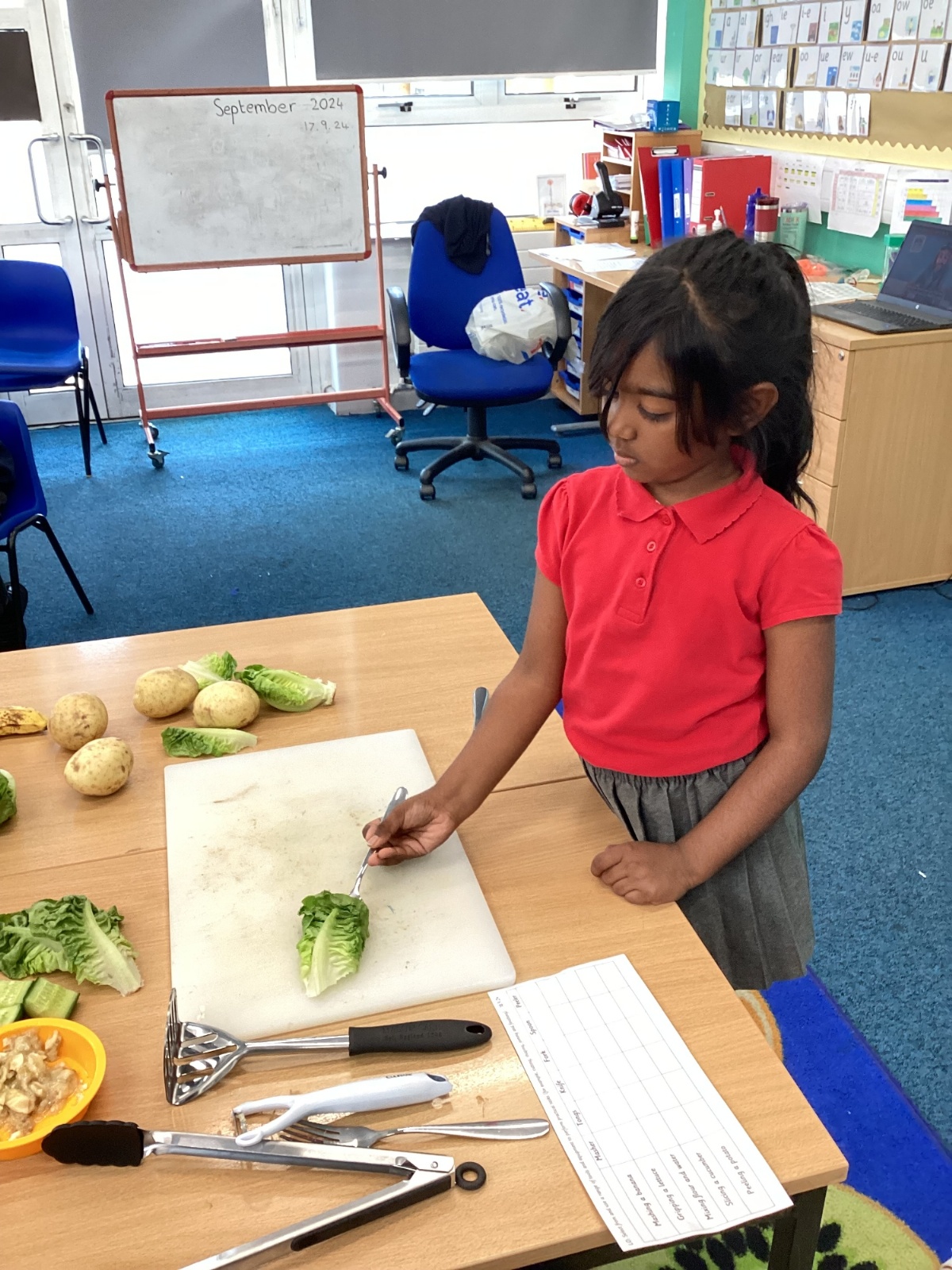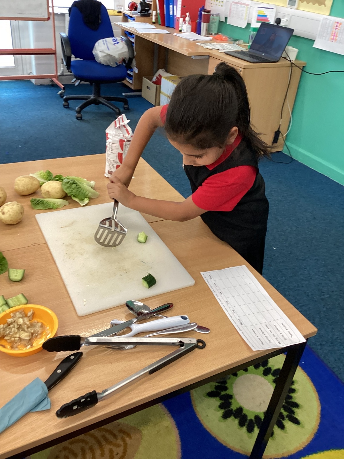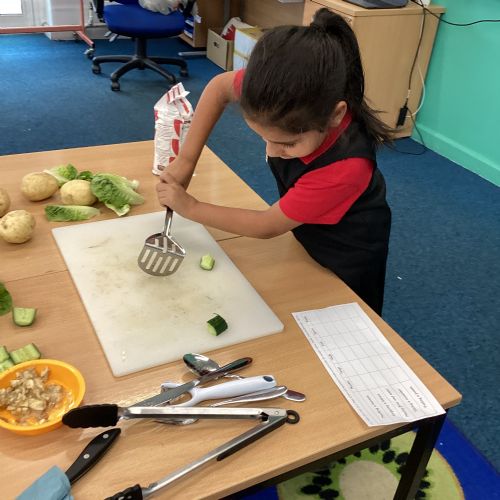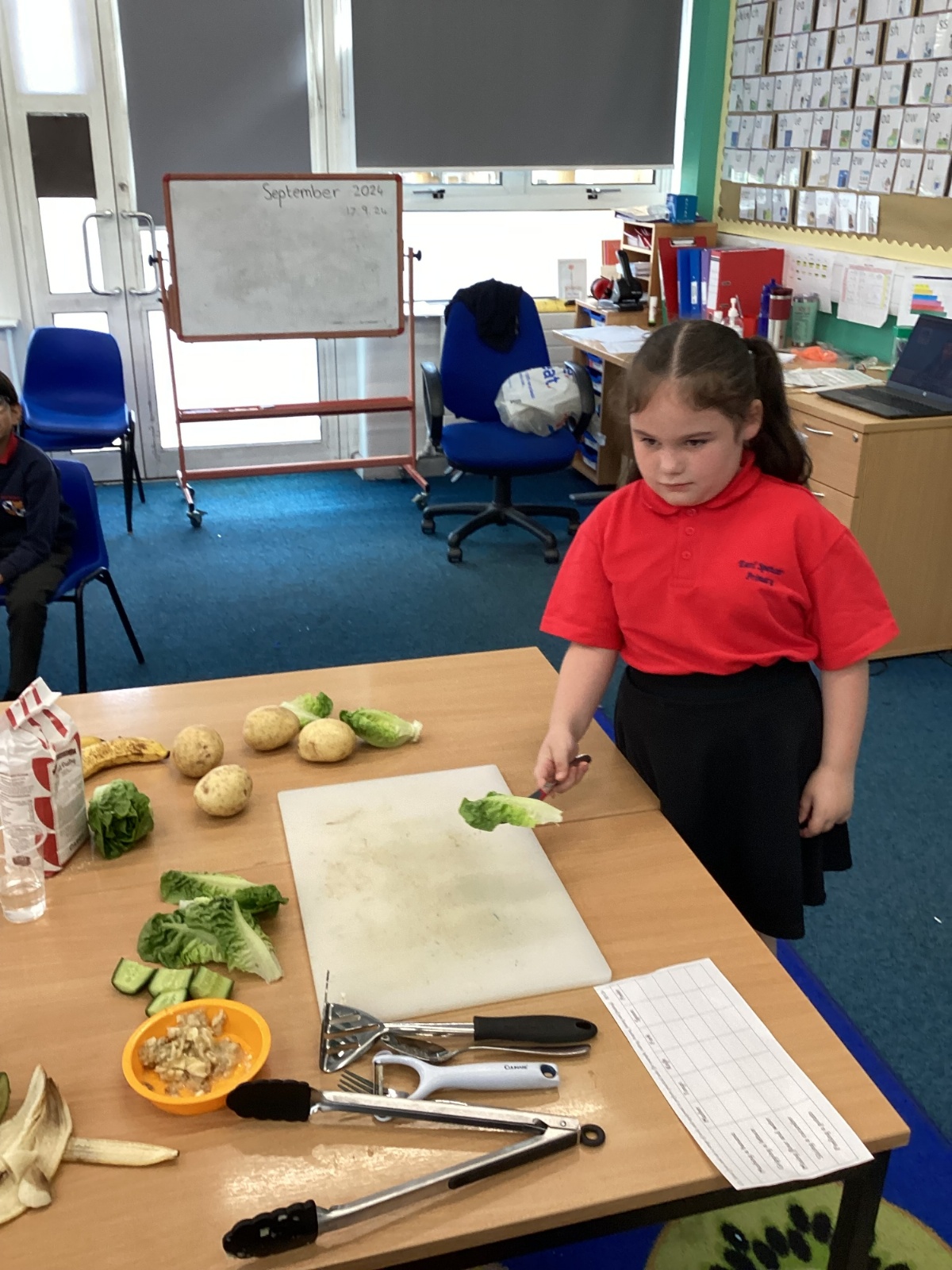 We used utensils such as peelers, tongs, knives, forks and spoons to see which ones were useful for certain jobs like gripping a lettuce leaf or peeling a potato.