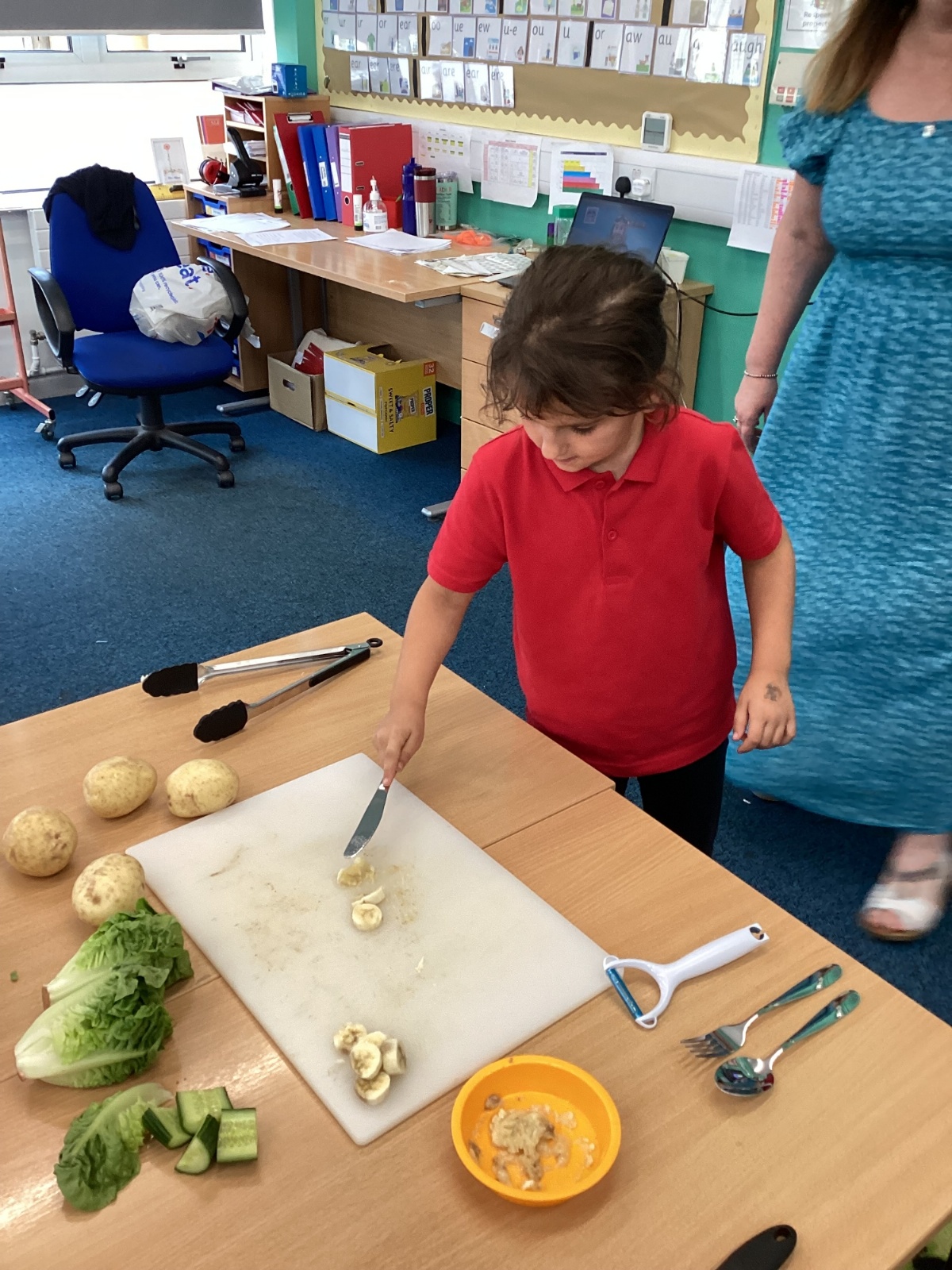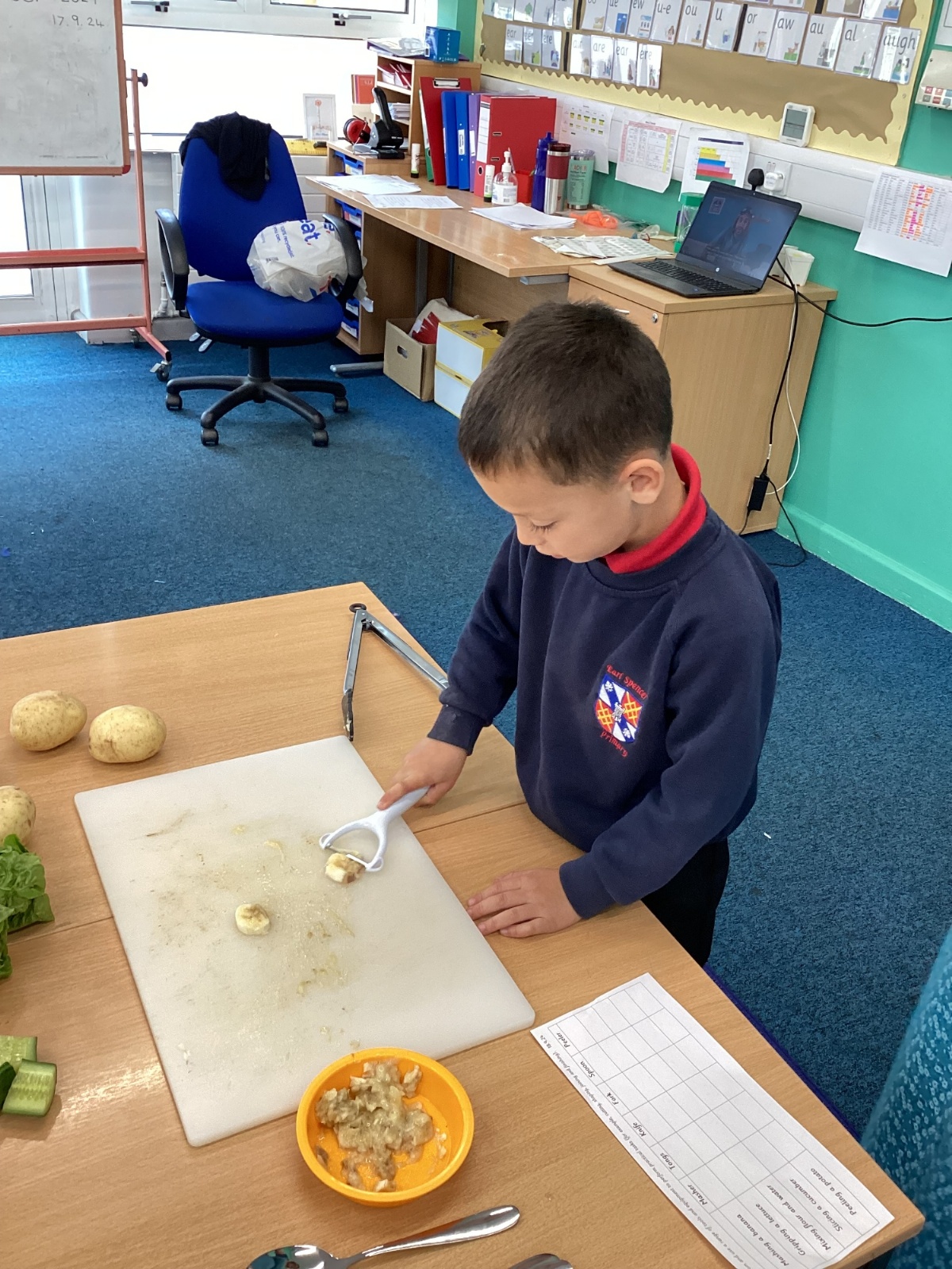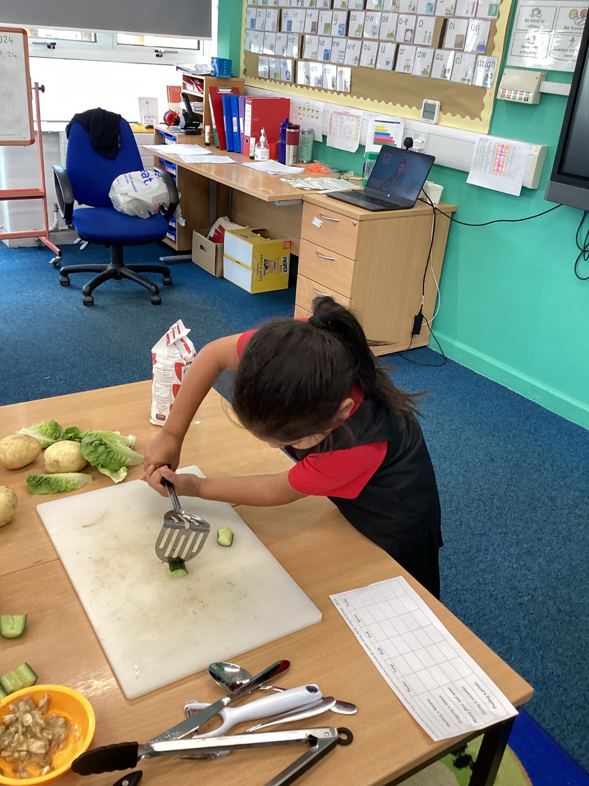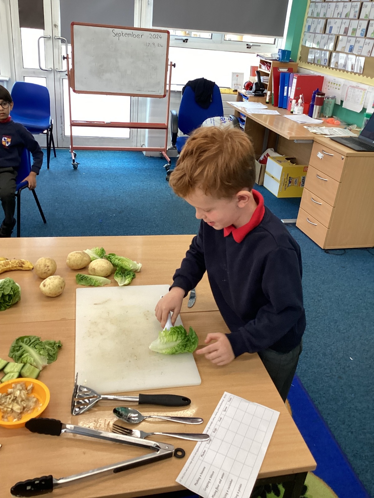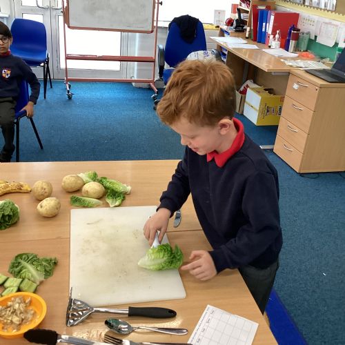 We used utensils such as peelers, tongs, knives, forks and spoons to see which ones were useful for certain jobs like gripping a lettuce leaf or peeling a potato.