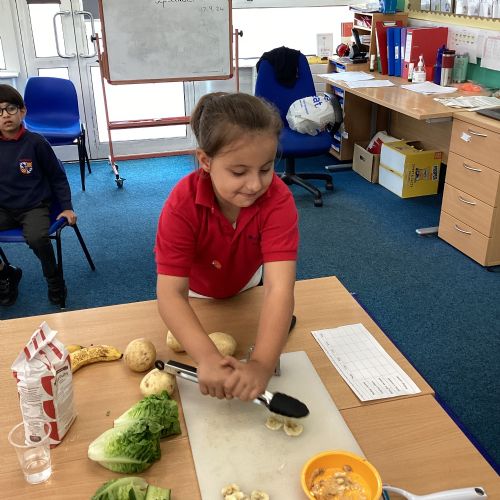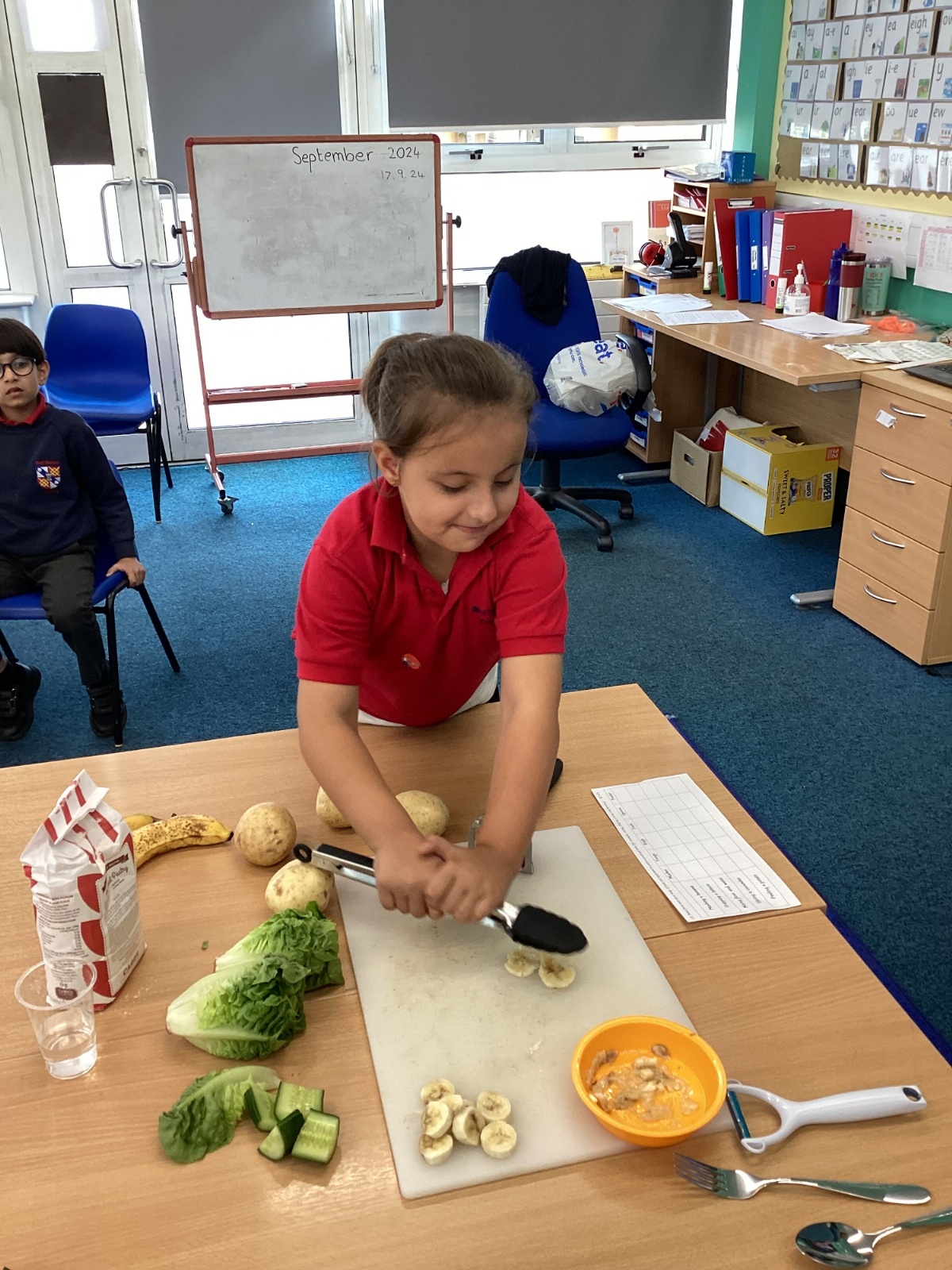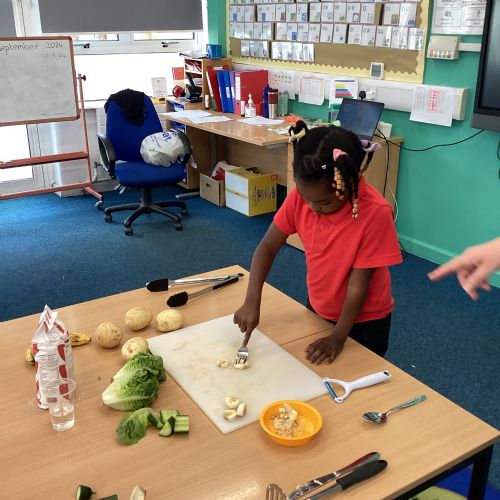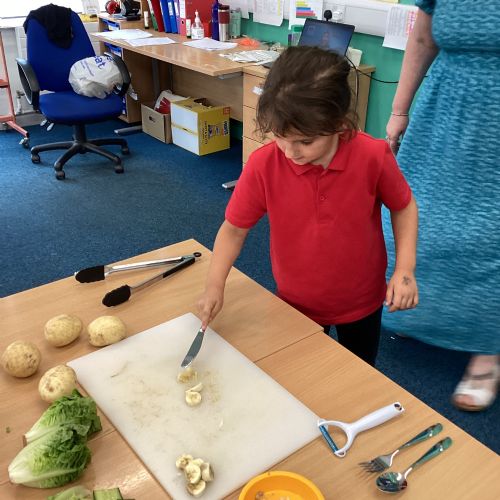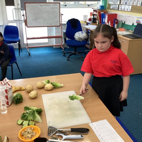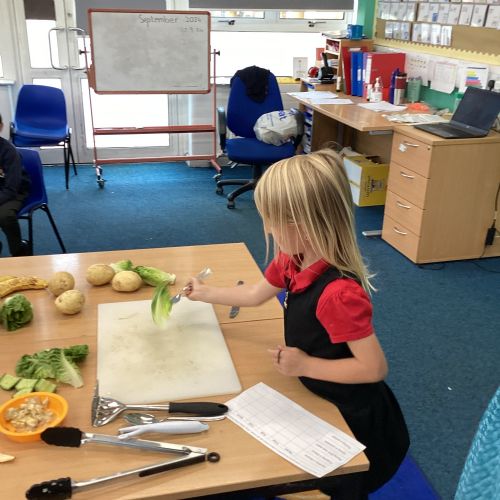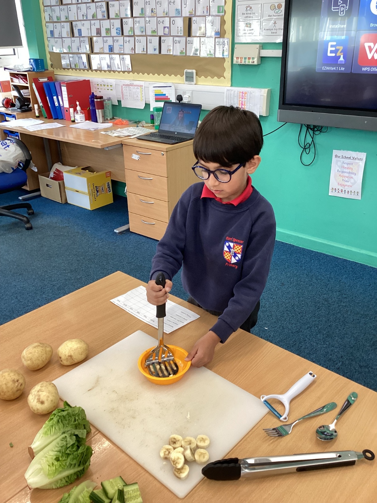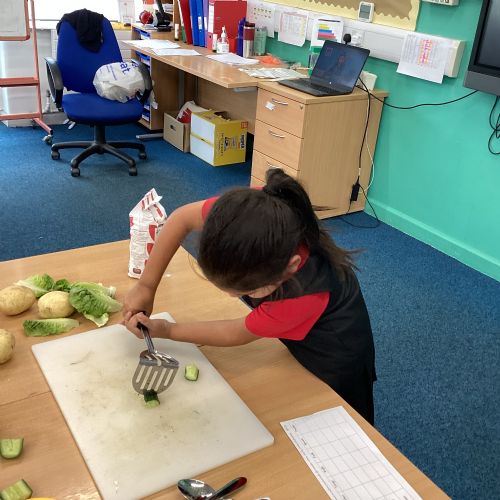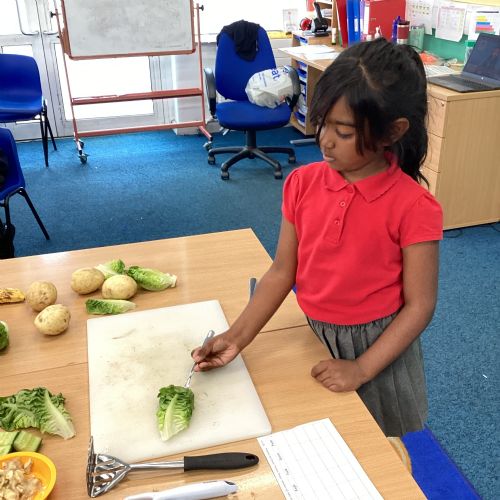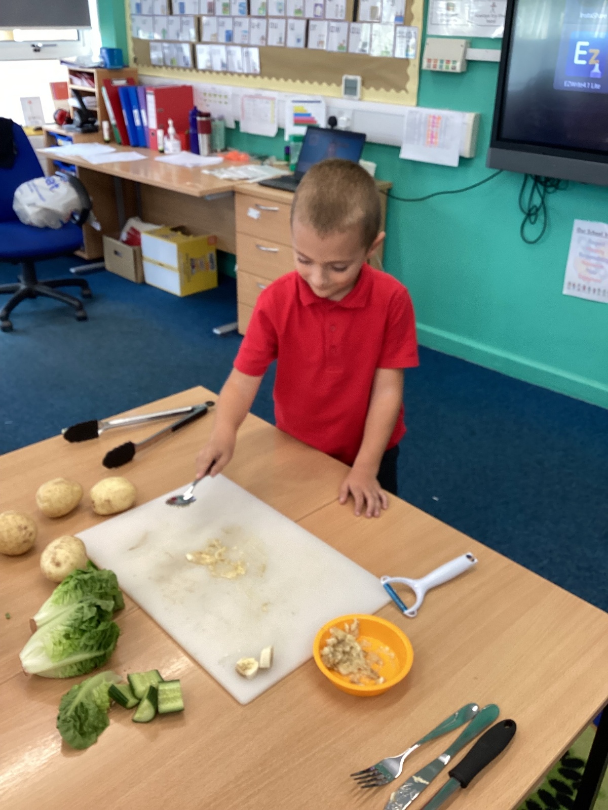 We used utensils such as peelers, tongs, knives, forks and spoons to see which ones were useful for certain jobs like gripping a lettuce leaf or peeling a potato.