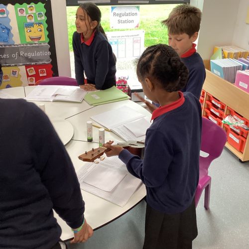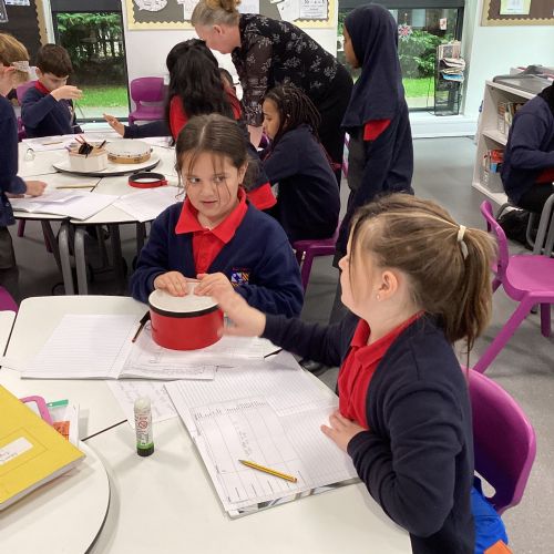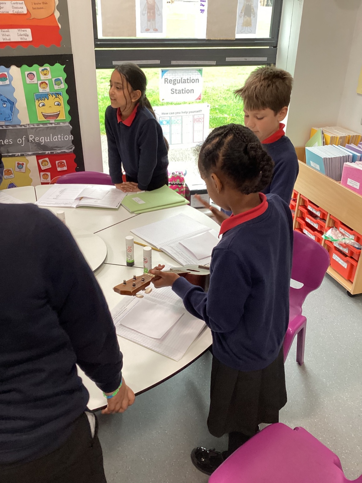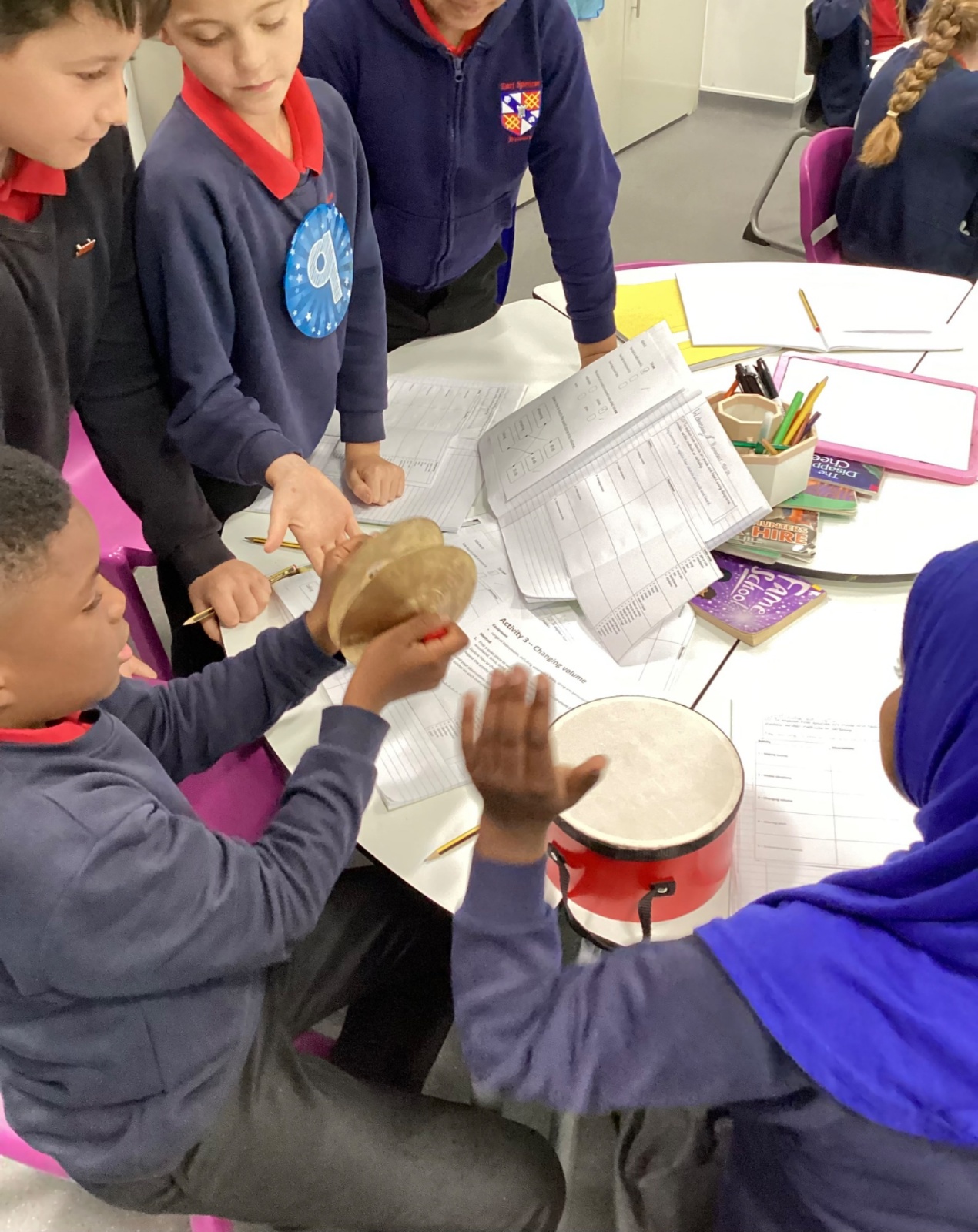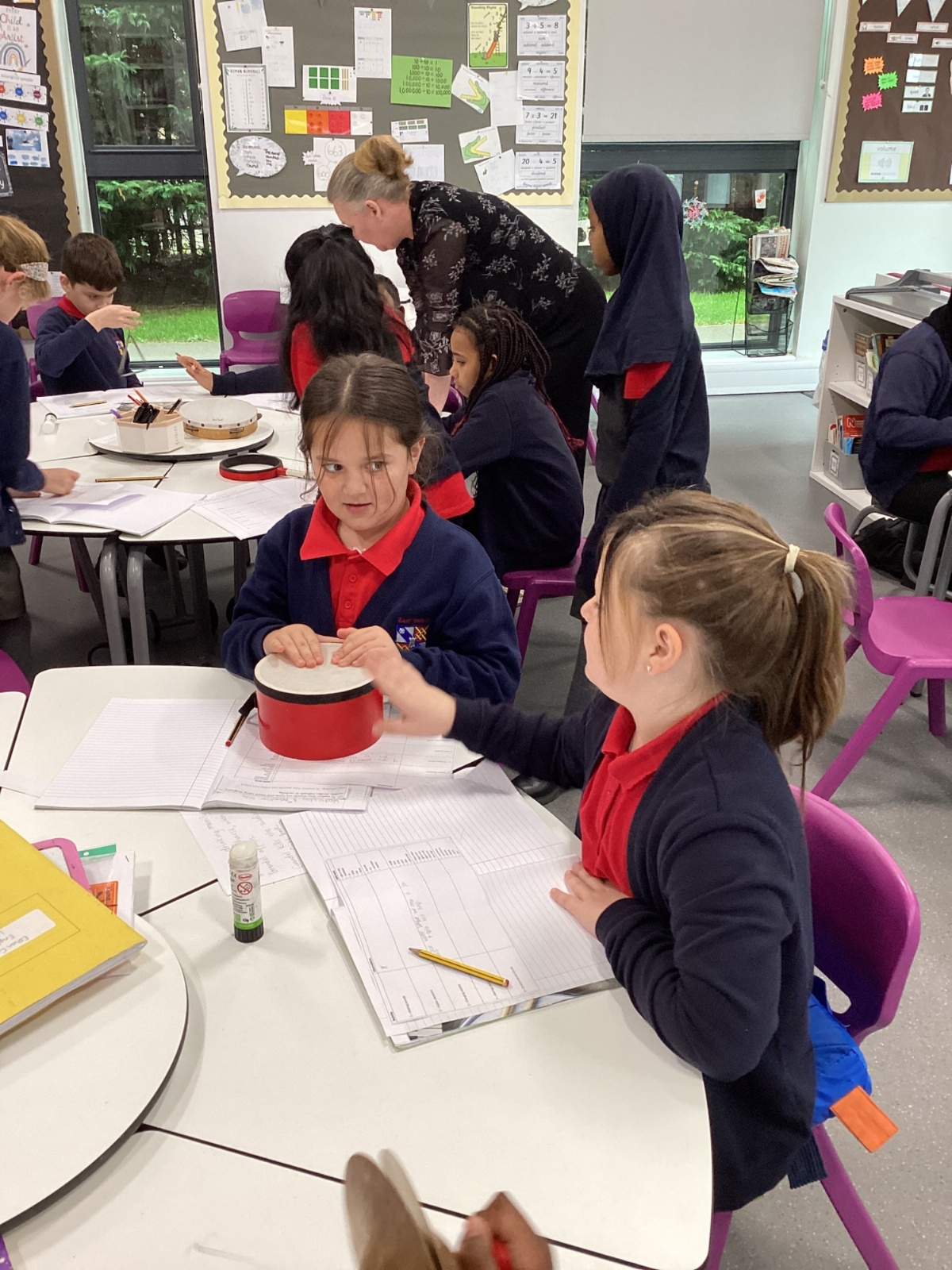 We used different instruments to investigate changing volume and pitch, looking at visible vibrations and environmental sounds.