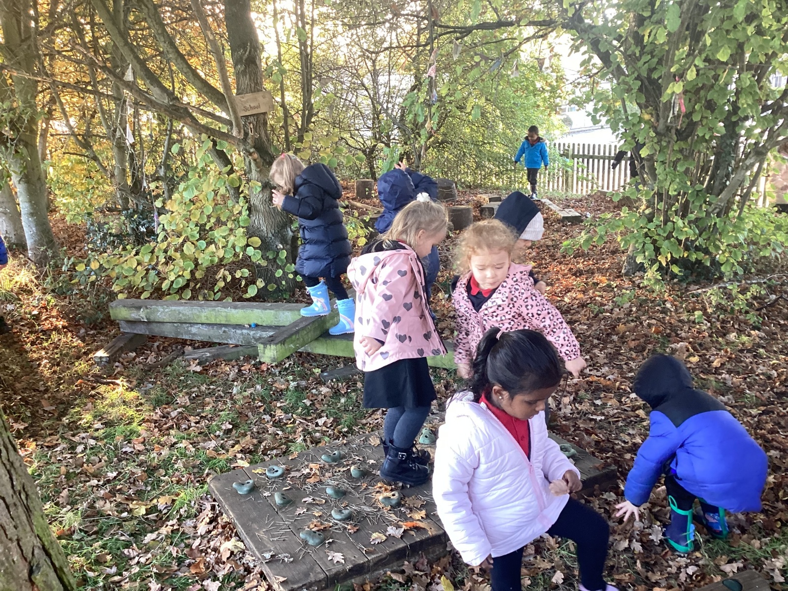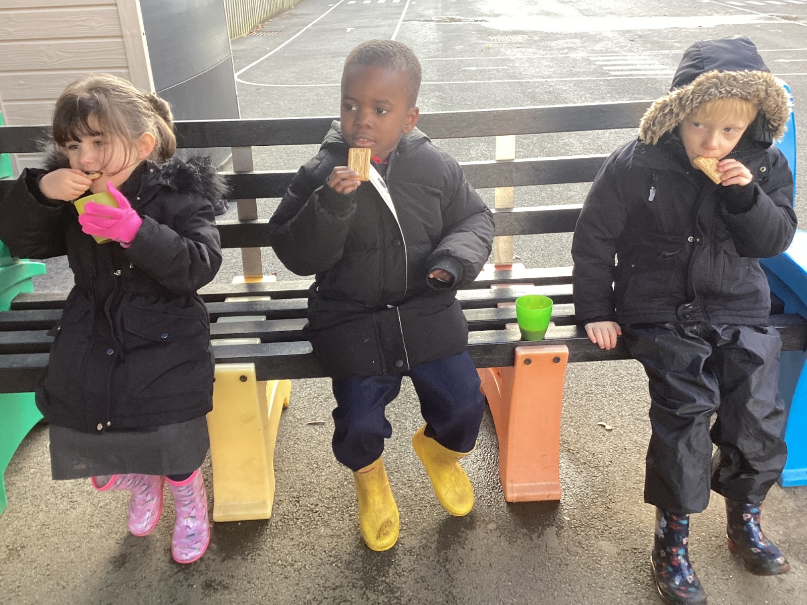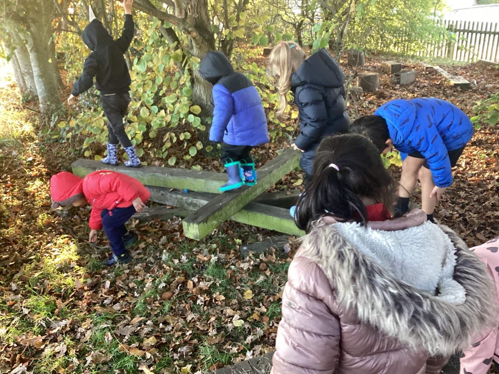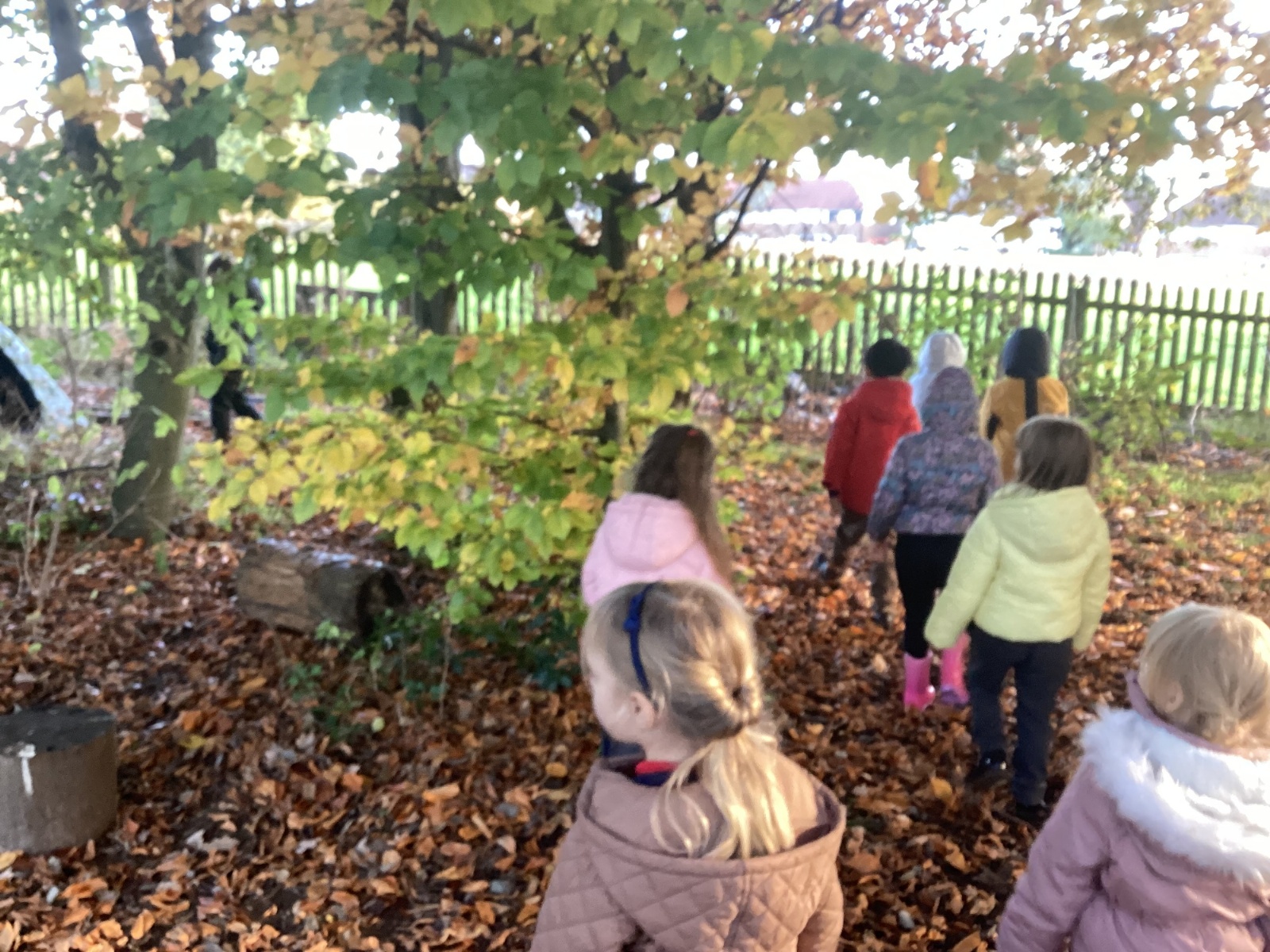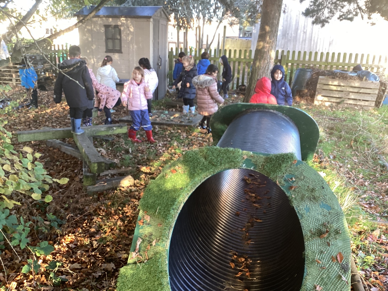We had a lovely time exploring the outside area. We enjoyed using the forest school area and going on a nature walk. We even sat down with our friends for a hot chocolate and biscuit whilst listening to a story.