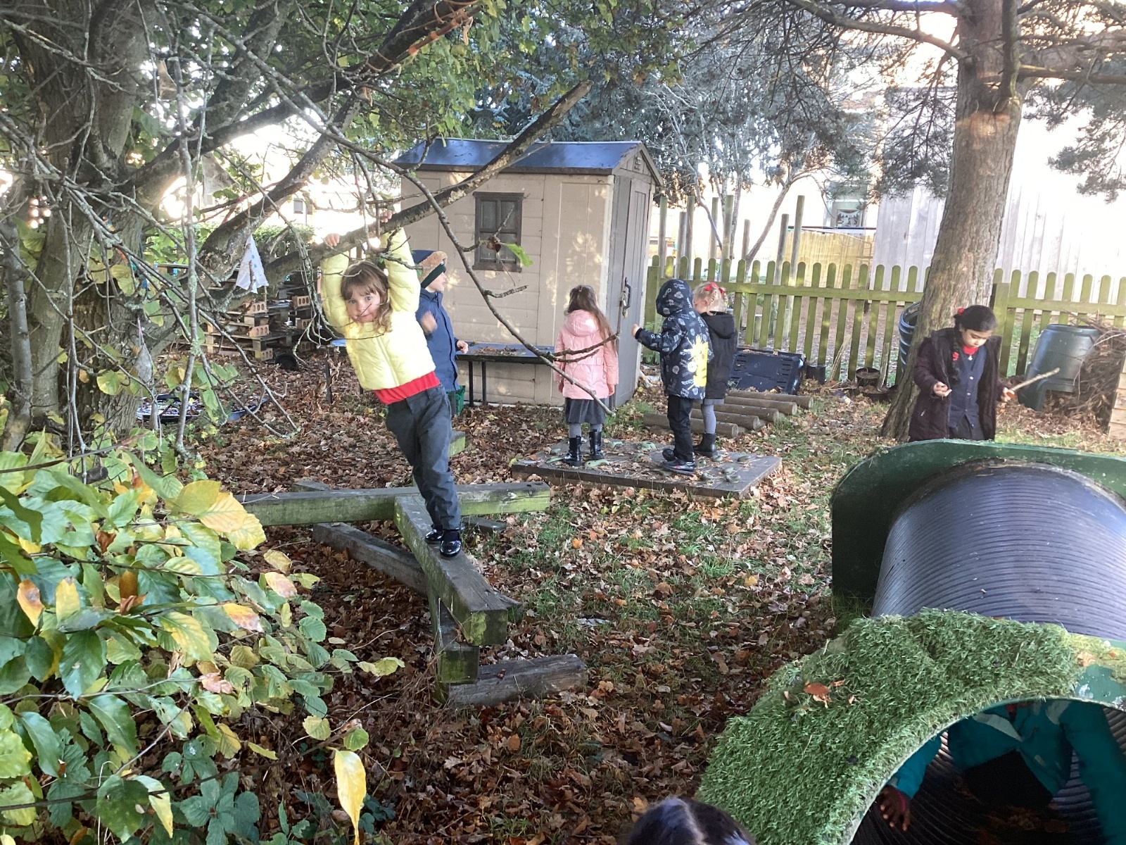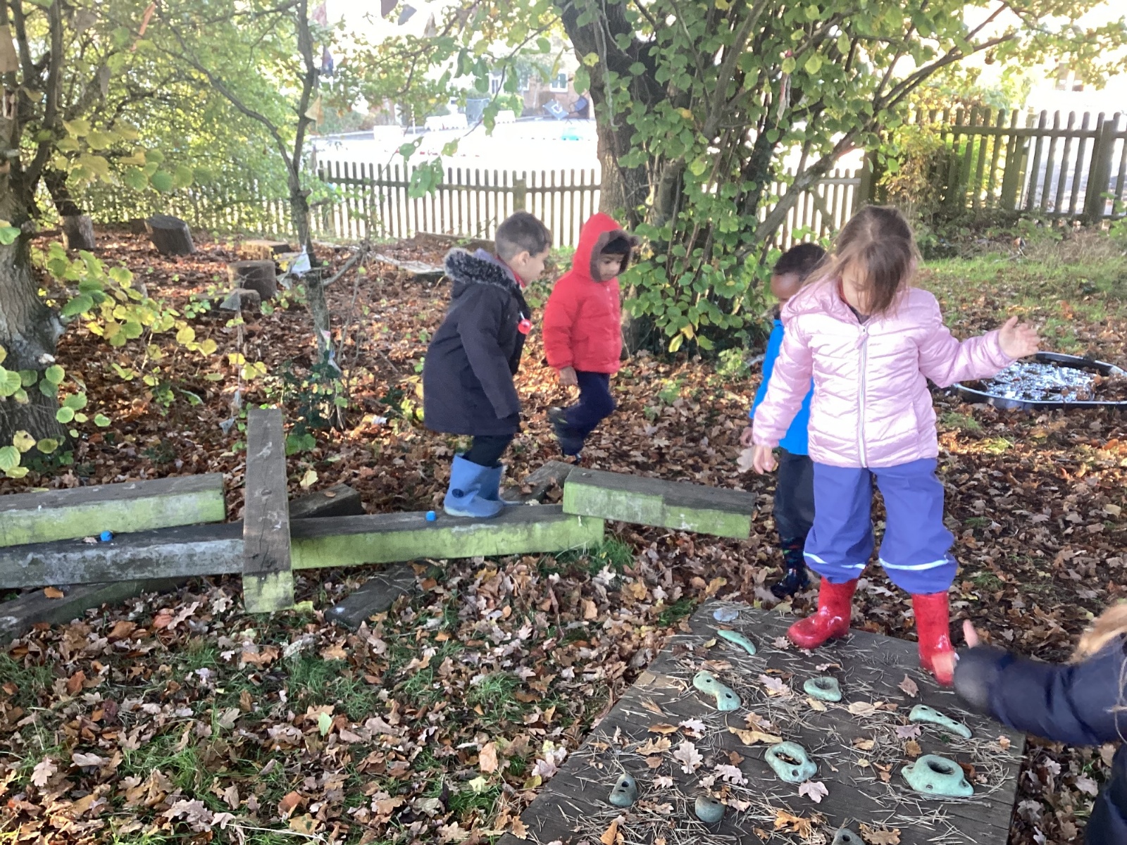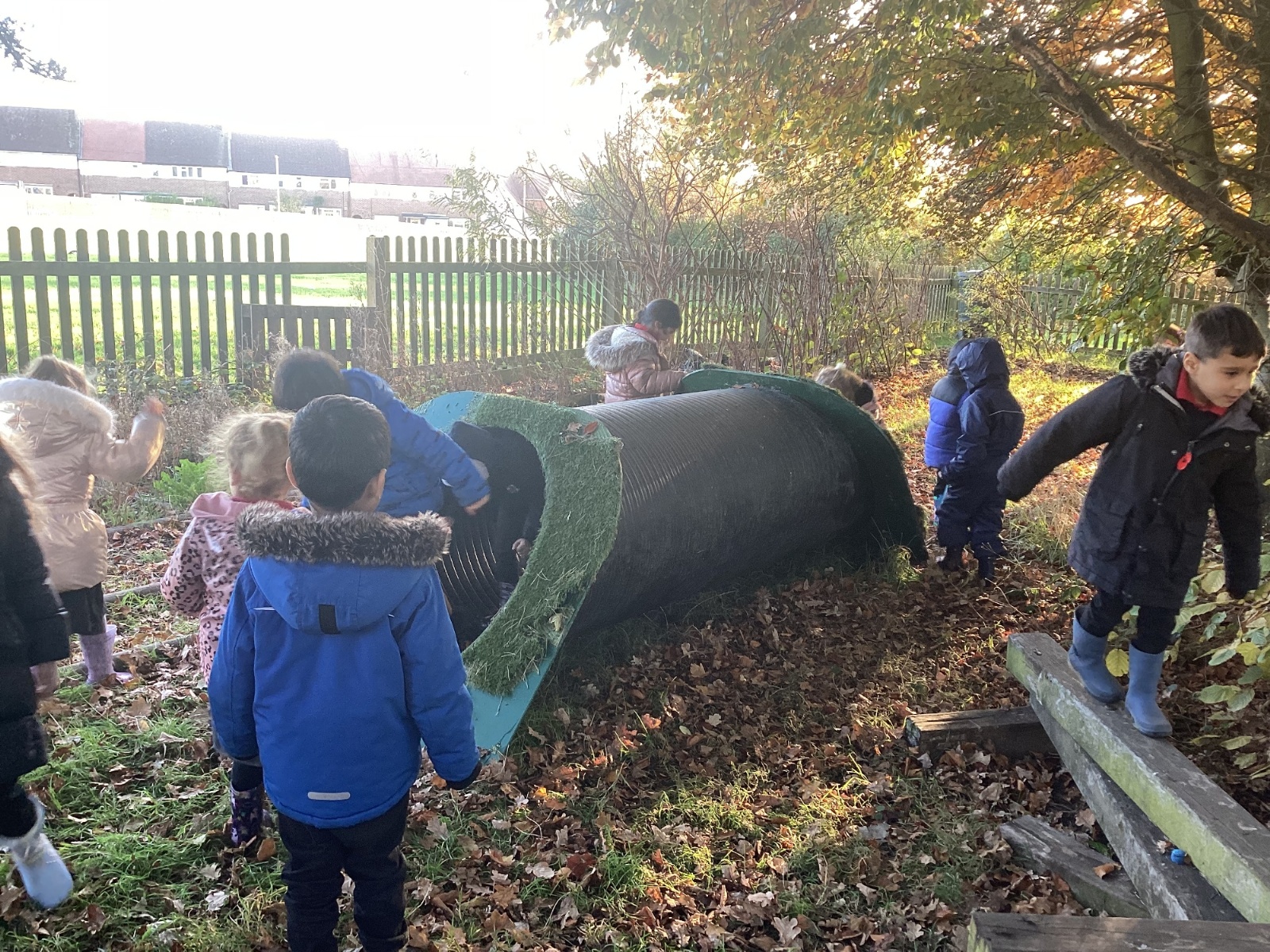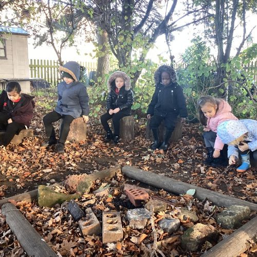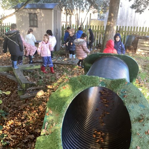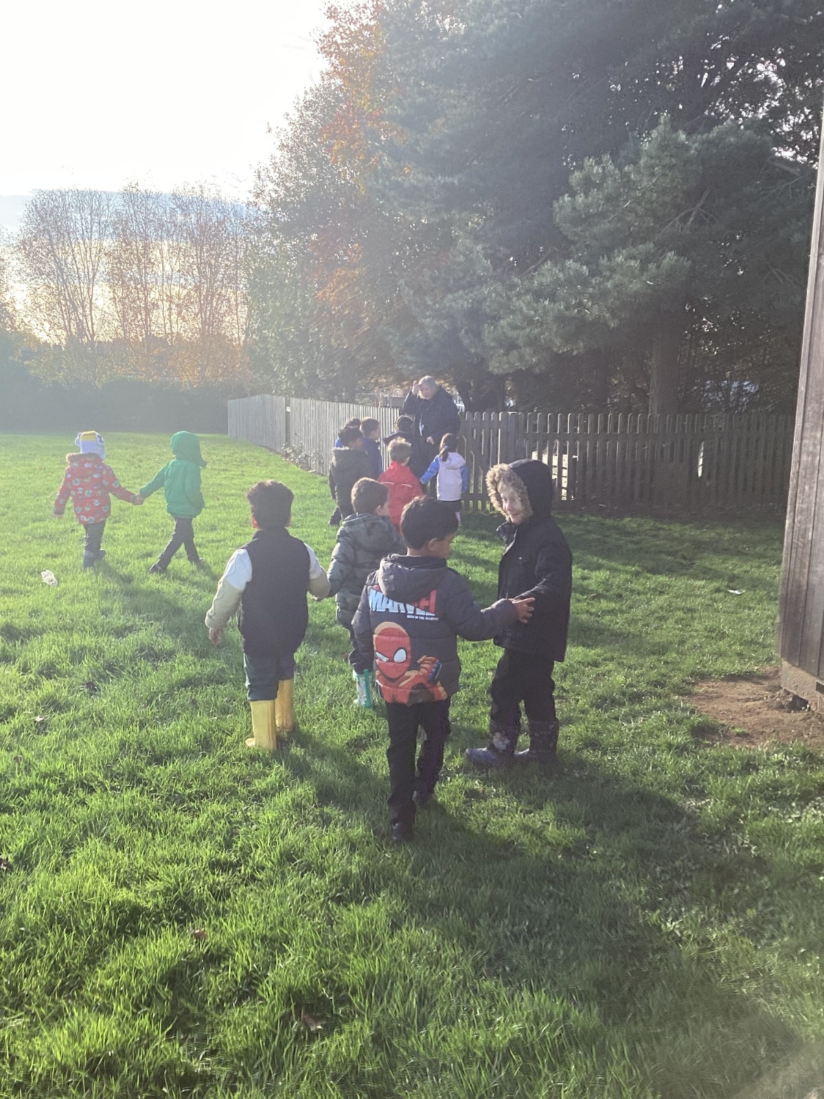 We had a lovely time exploring the outside area. We enjoyed using the forest school area and going on a nature walk. We even sat down with our friends for a hot chocolate and biscuit whilst listening to a story.