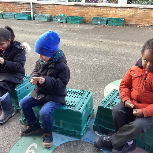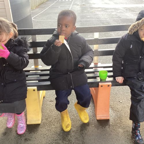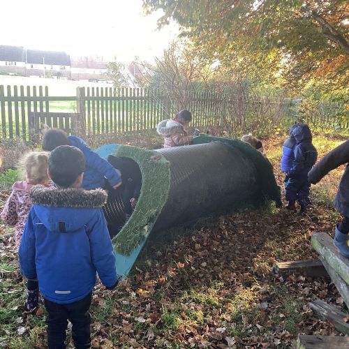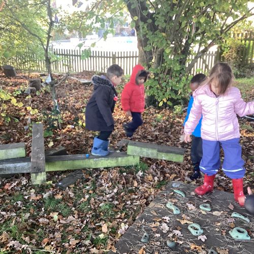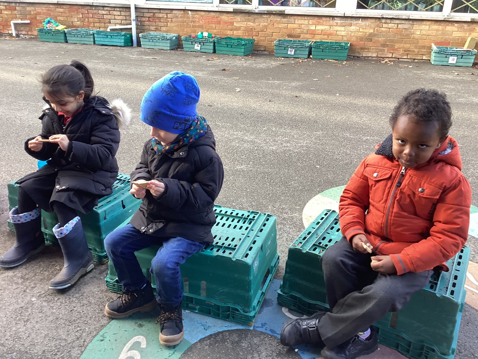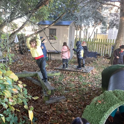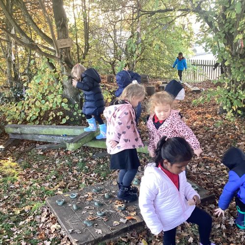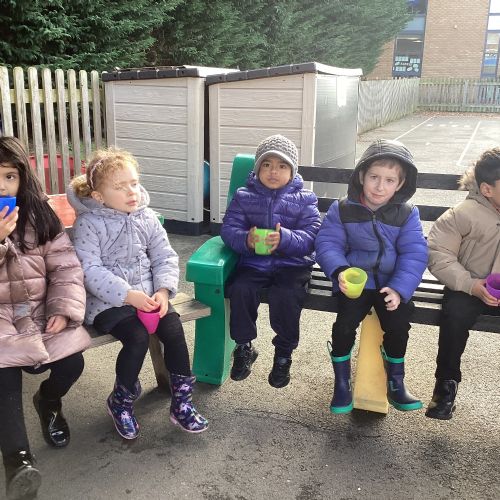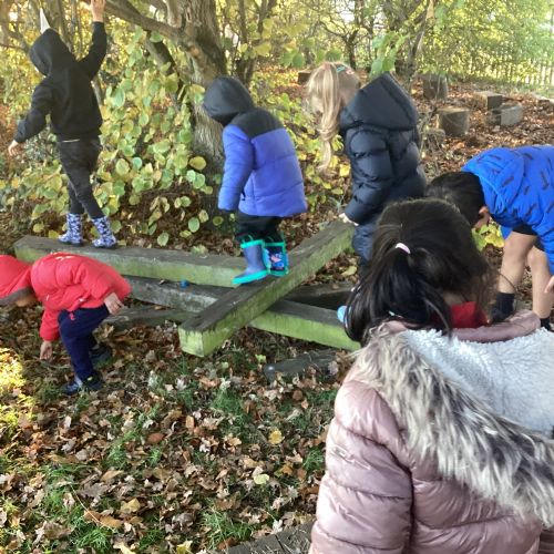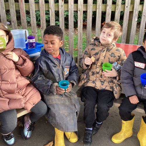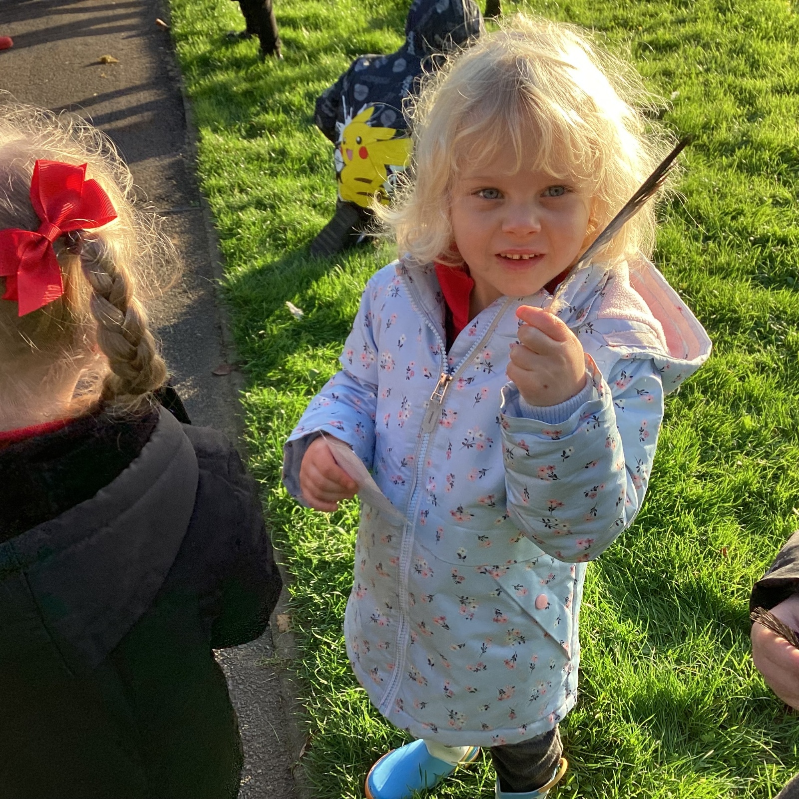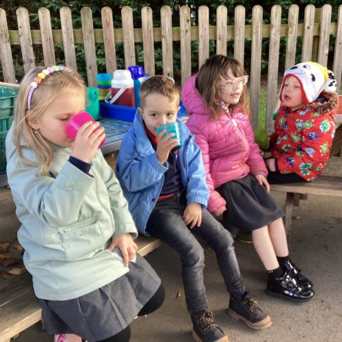 We had a lovely time exploring the outside area. We enjoyed using the forest school area and going on a nature walk. We even sat down with our friends for a hot chocolate and biscuit whilst listening to a story.