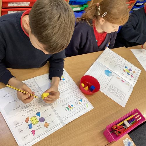 We have been busy researching the properties of 2D & 3D shapes including symmetry, vertices, faces and edges.