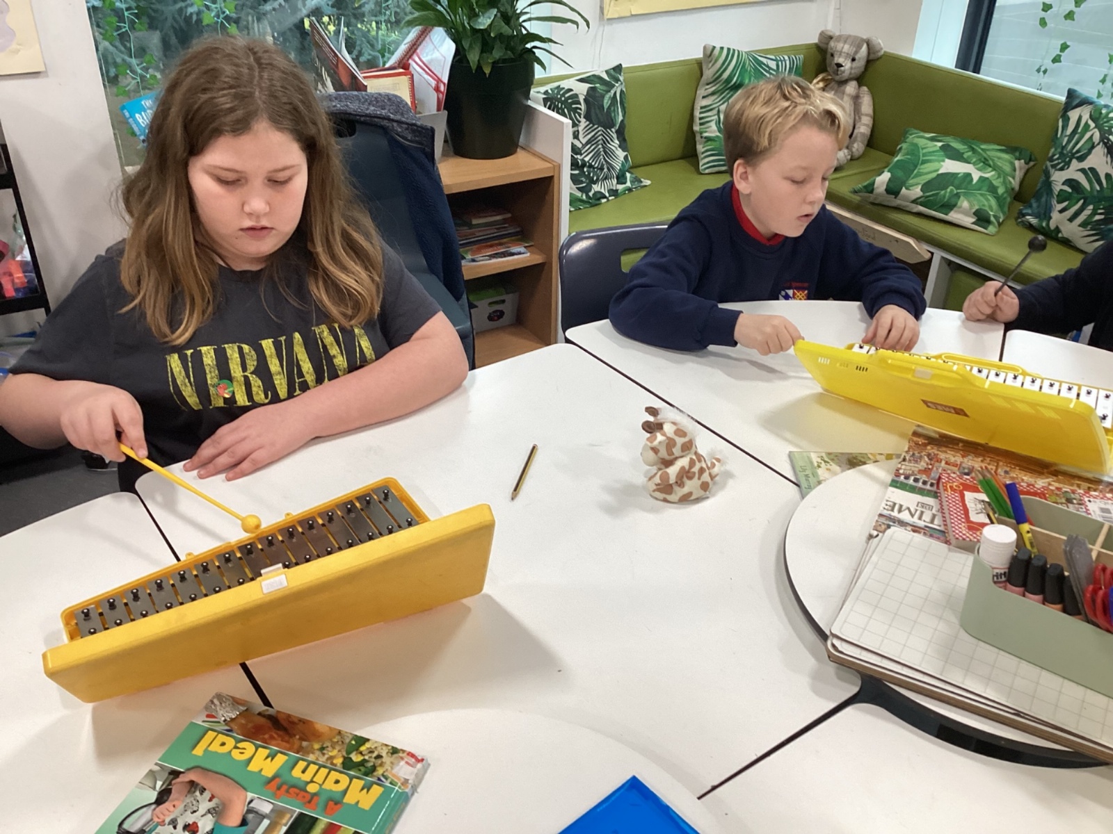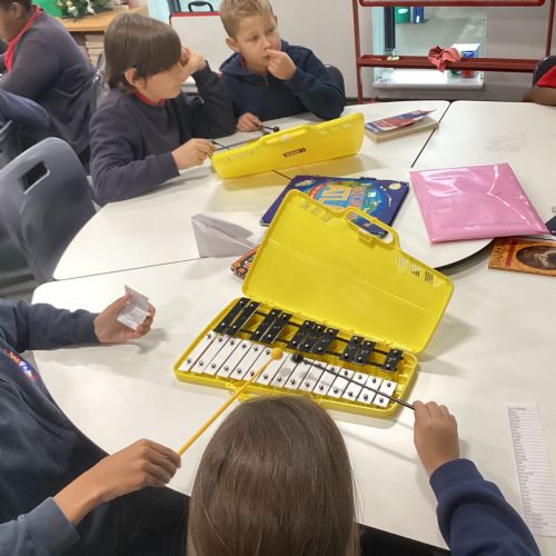 We used notes A, B and G on the glockenspiels to perform, 'Happy'