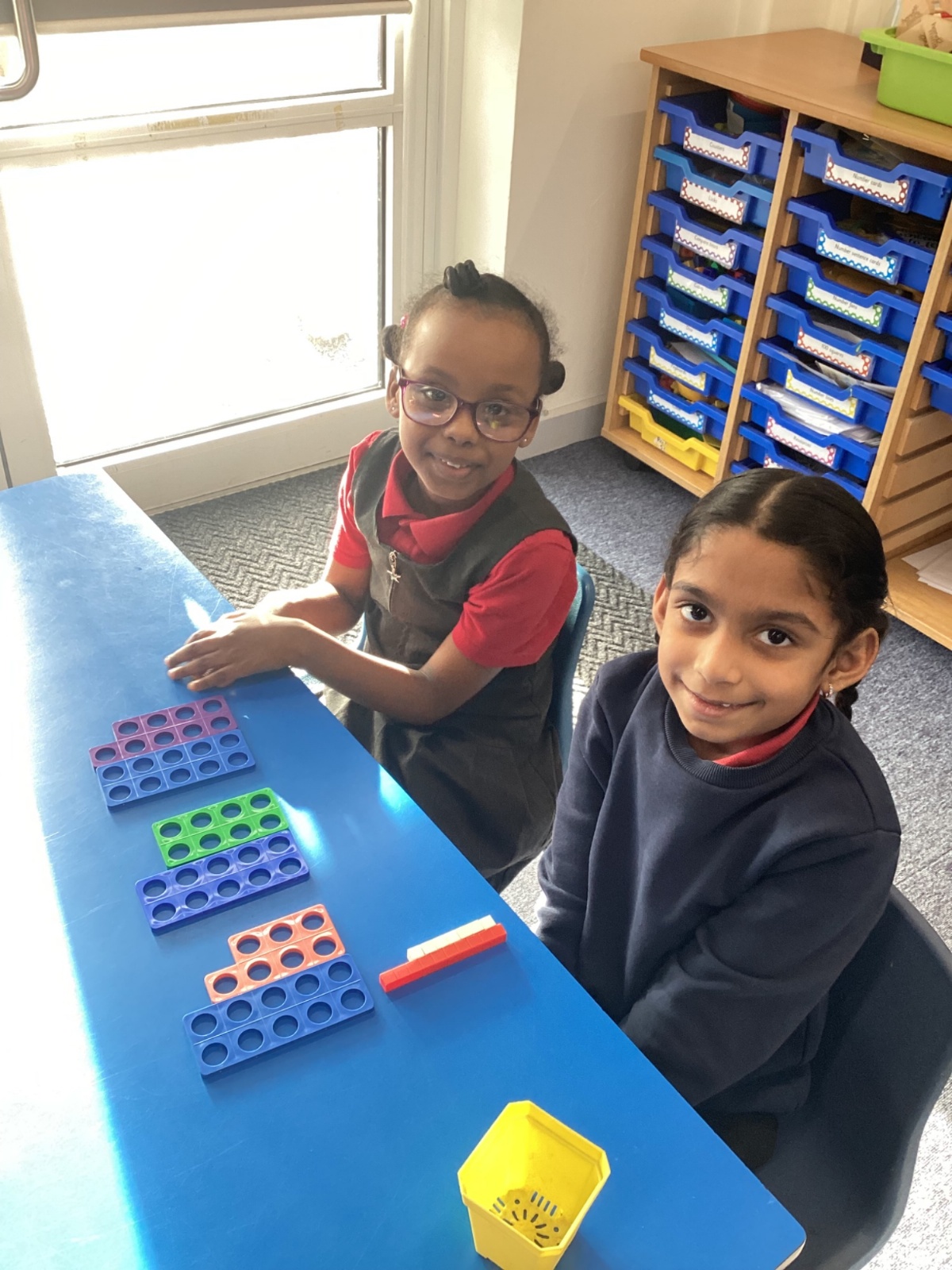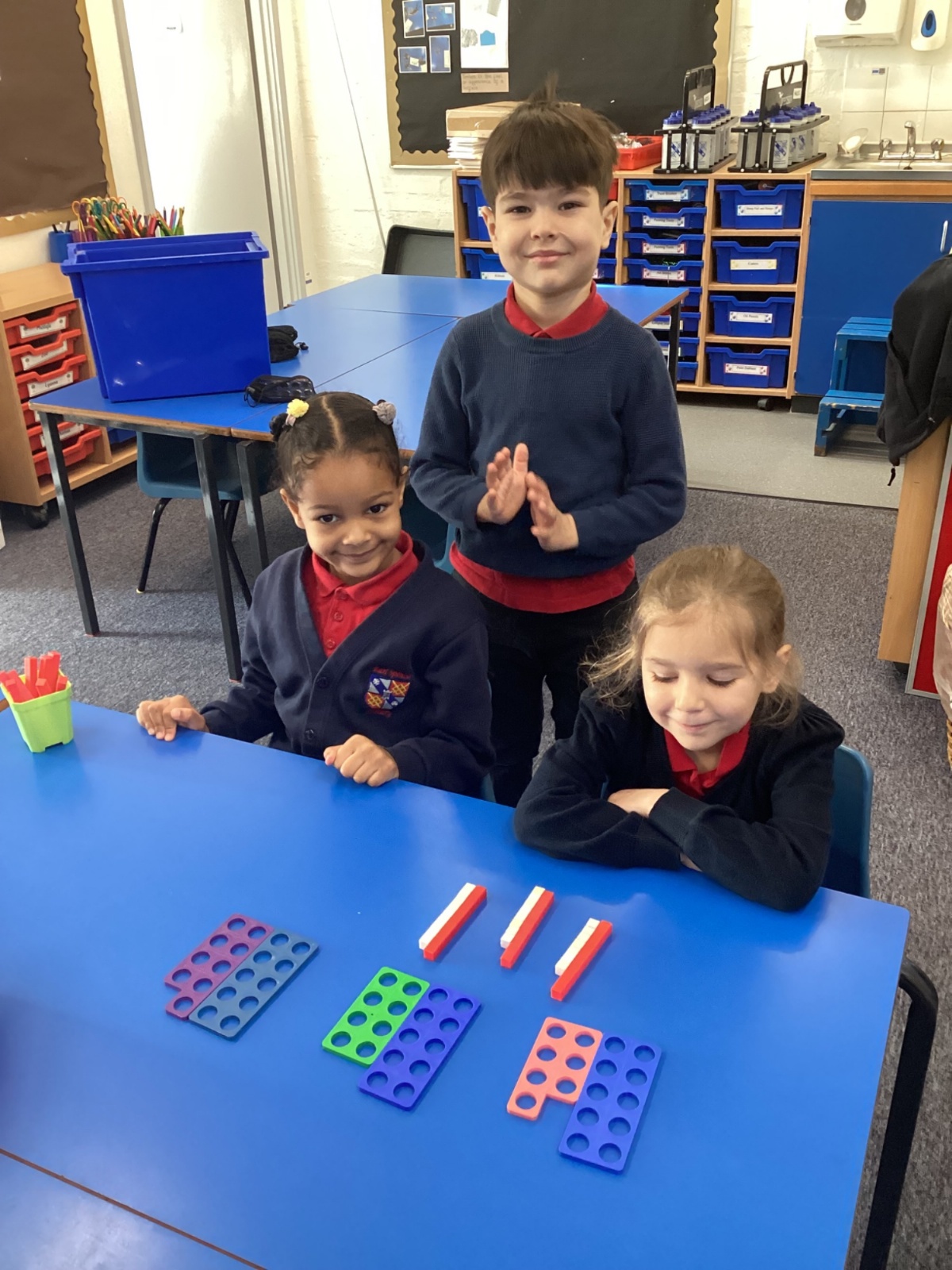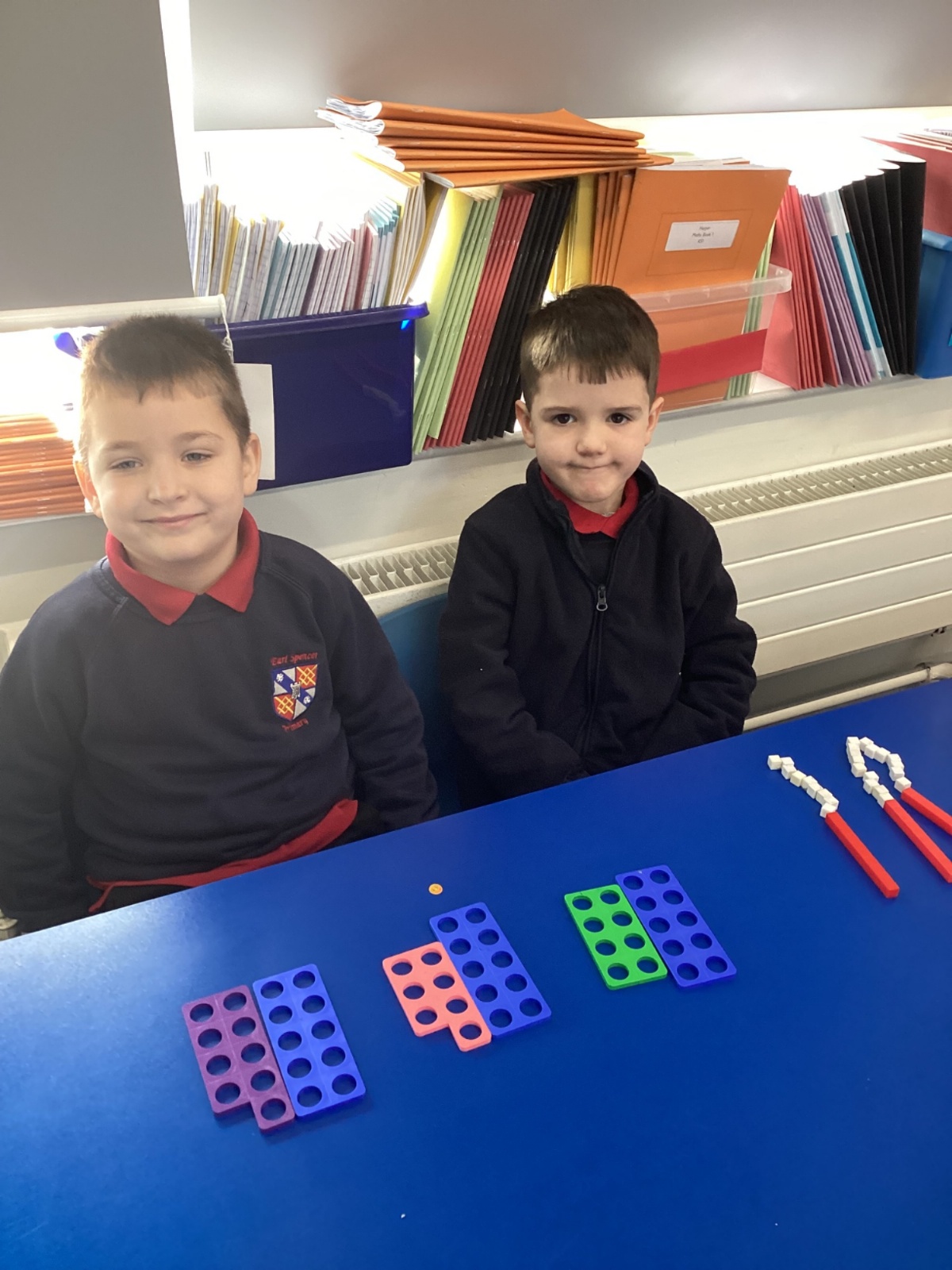 In our maths lessons we have been making numbers up to 20 using base ten and Numicon. We have been looking at these numbers as 10 and a bit more.