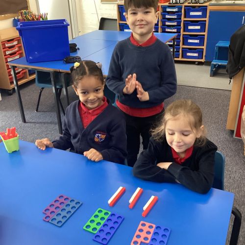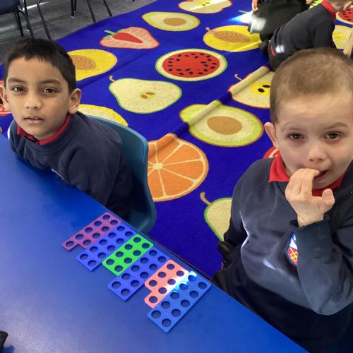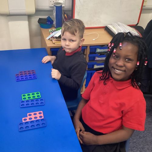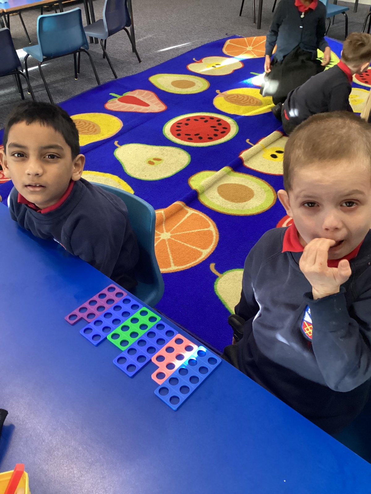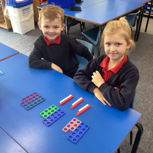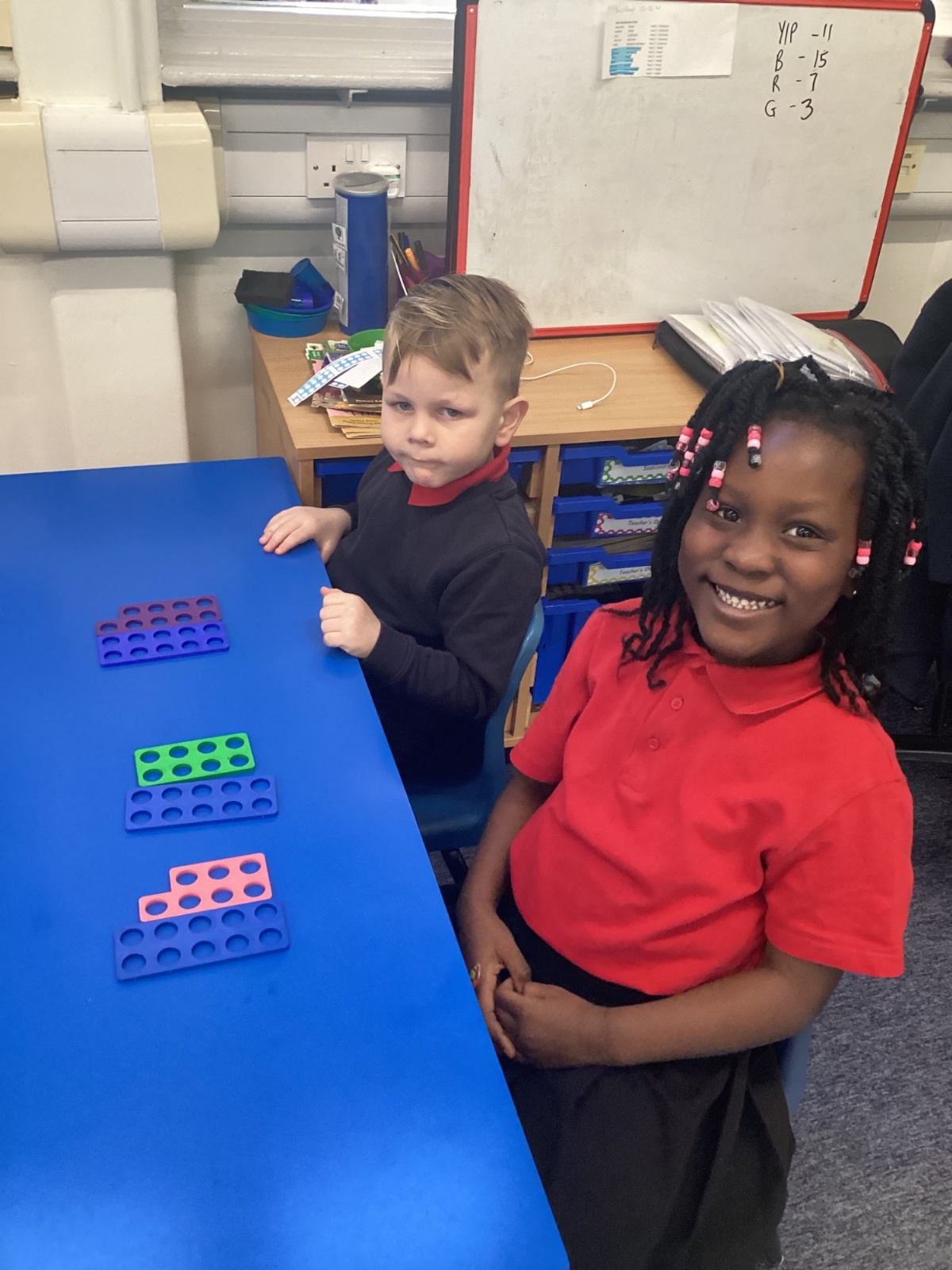 In our maths lessons we have been making numbers up to 20 using base ten and Numicon. We have been looking at these numbers as 10 and a bit more.