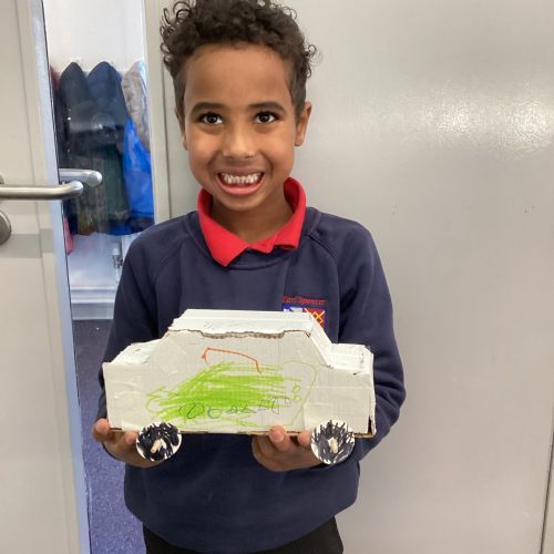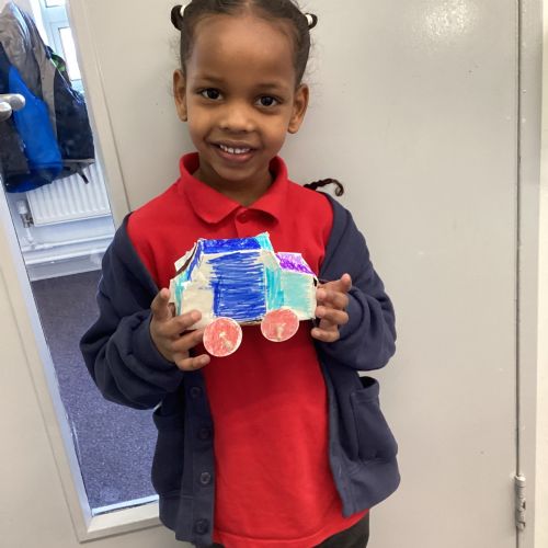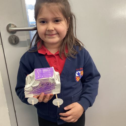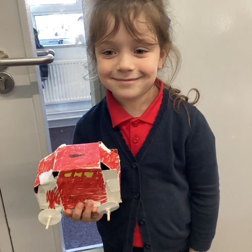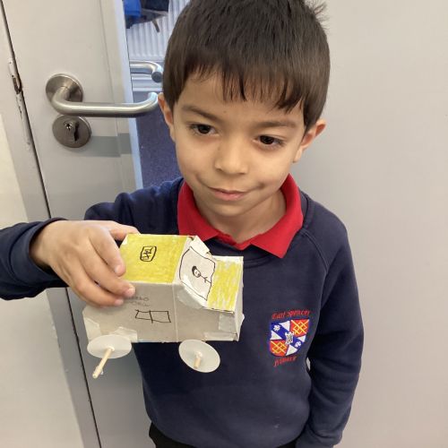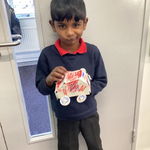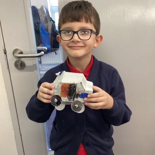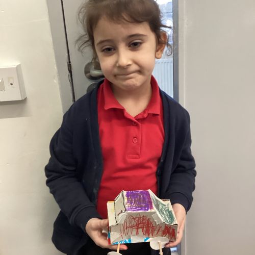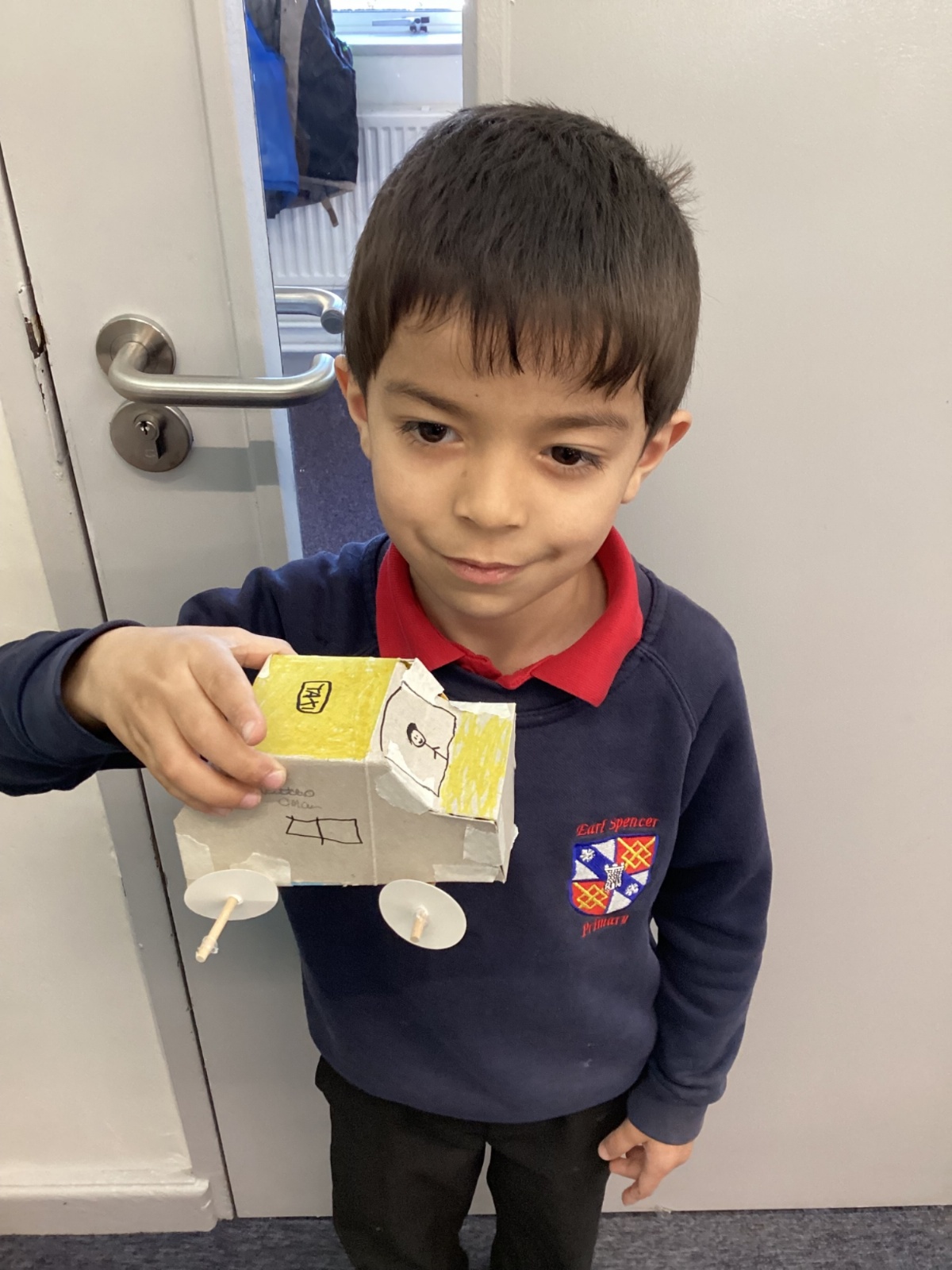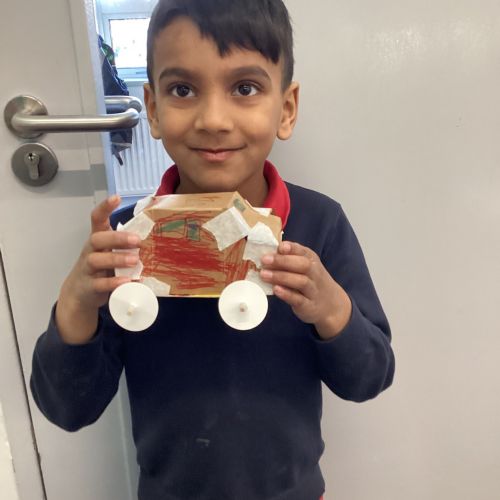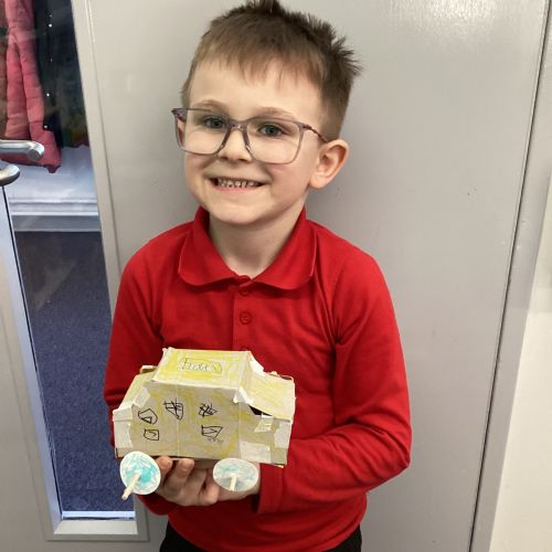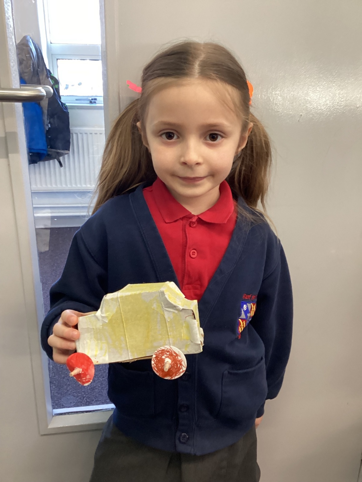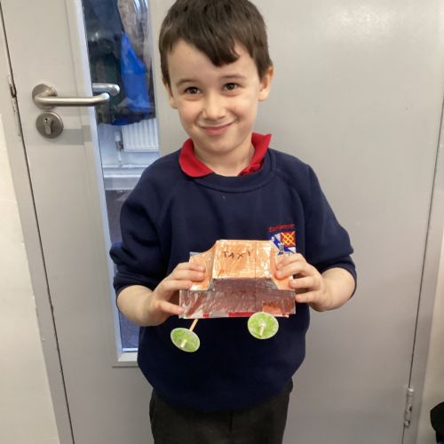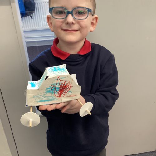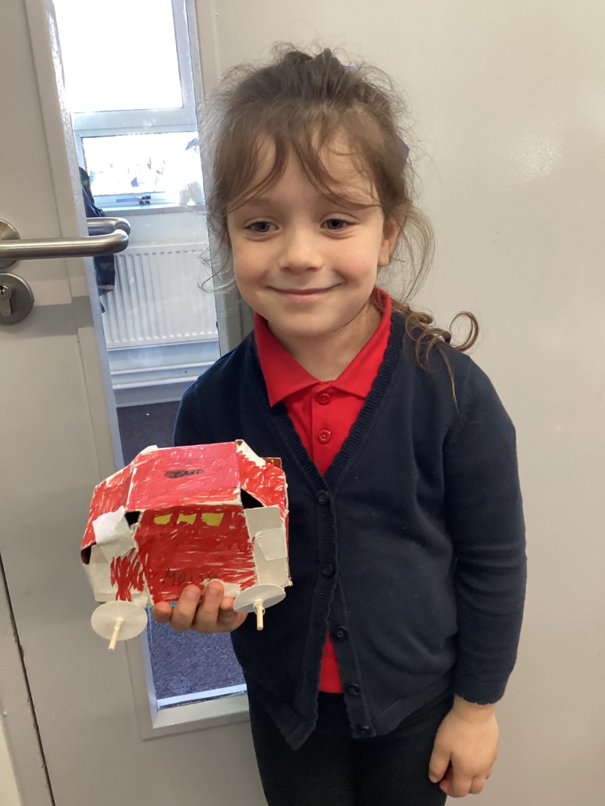 In our design technology lessons we have been looking at taxis and the different parts, wheels, chassis and axels. We then designed our own taxi before making it and decorating it to make sure it matched our design. Here you will see us with our finished taxi.