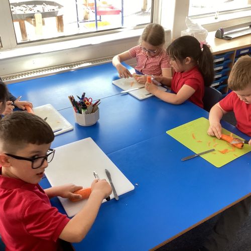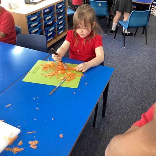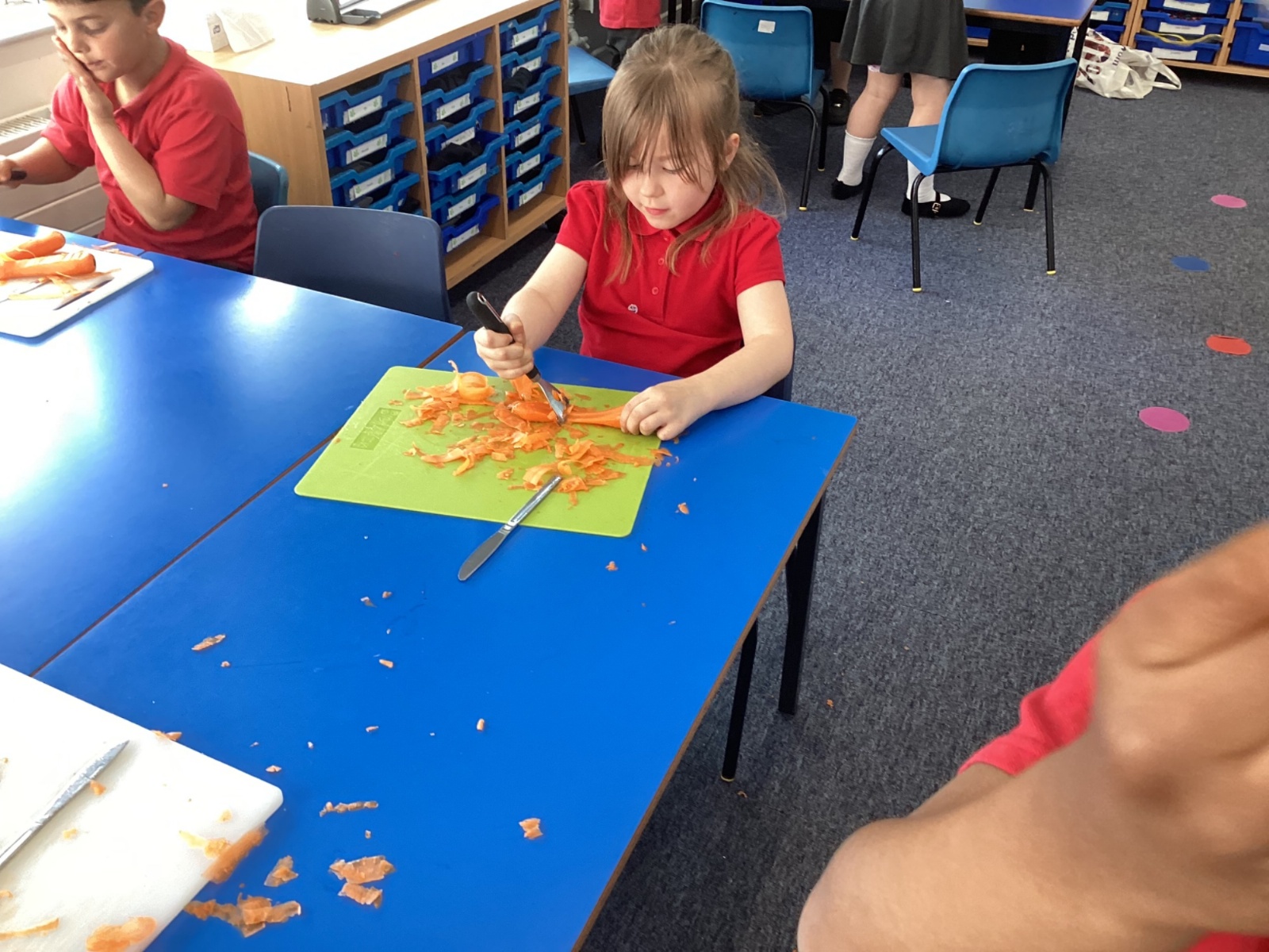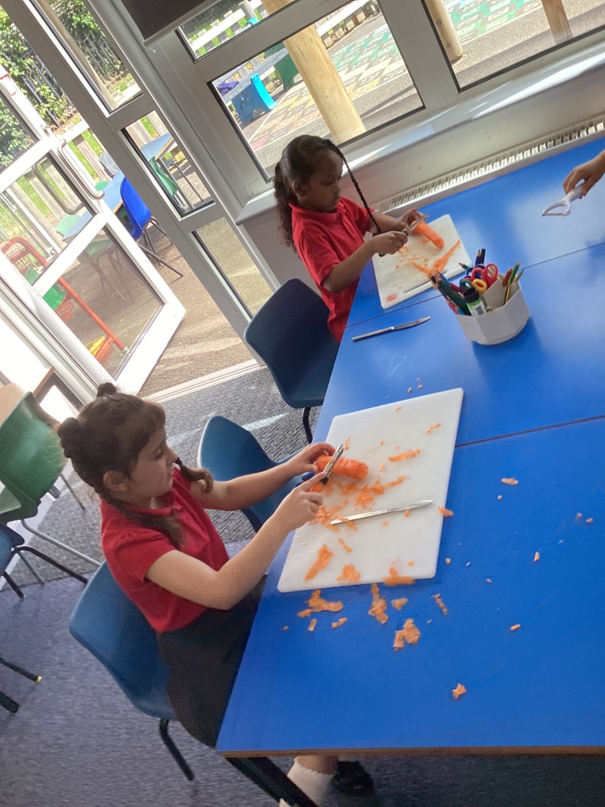 This week in our DR lesson we have been learning how to prepare vegetables, we have learnt how to chop, peel, mash and slice a variety of vegetables.