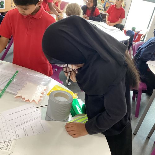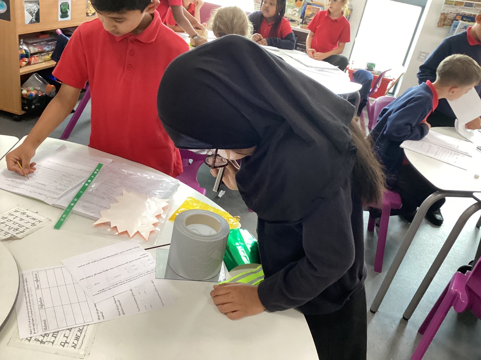 Beech class have carried out some comparative experiments.  A light source was shone into a tube onto a variety of materials.  Then they had to sort them into whether they reflect the light or not.  This enabled them to make a prediction about a good surface for safety clothing .