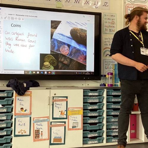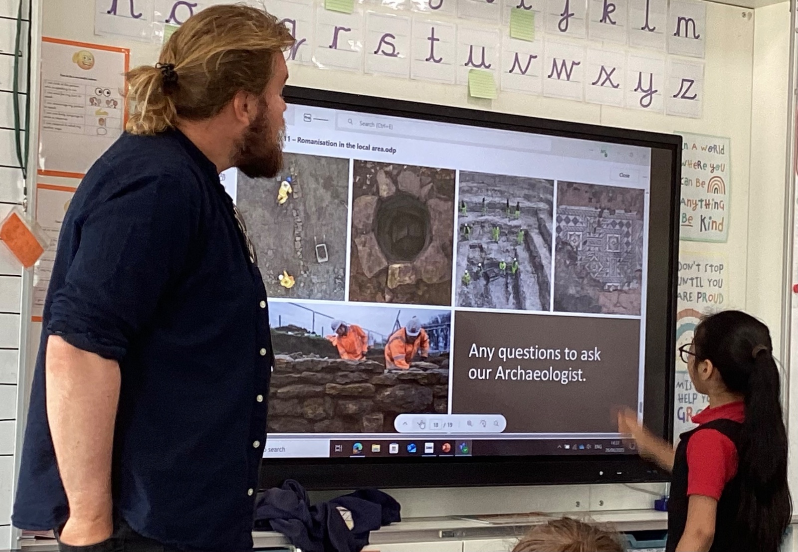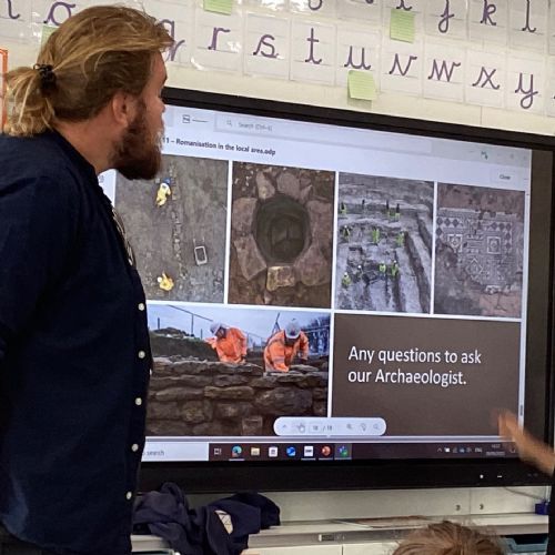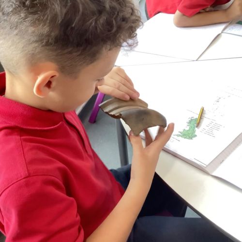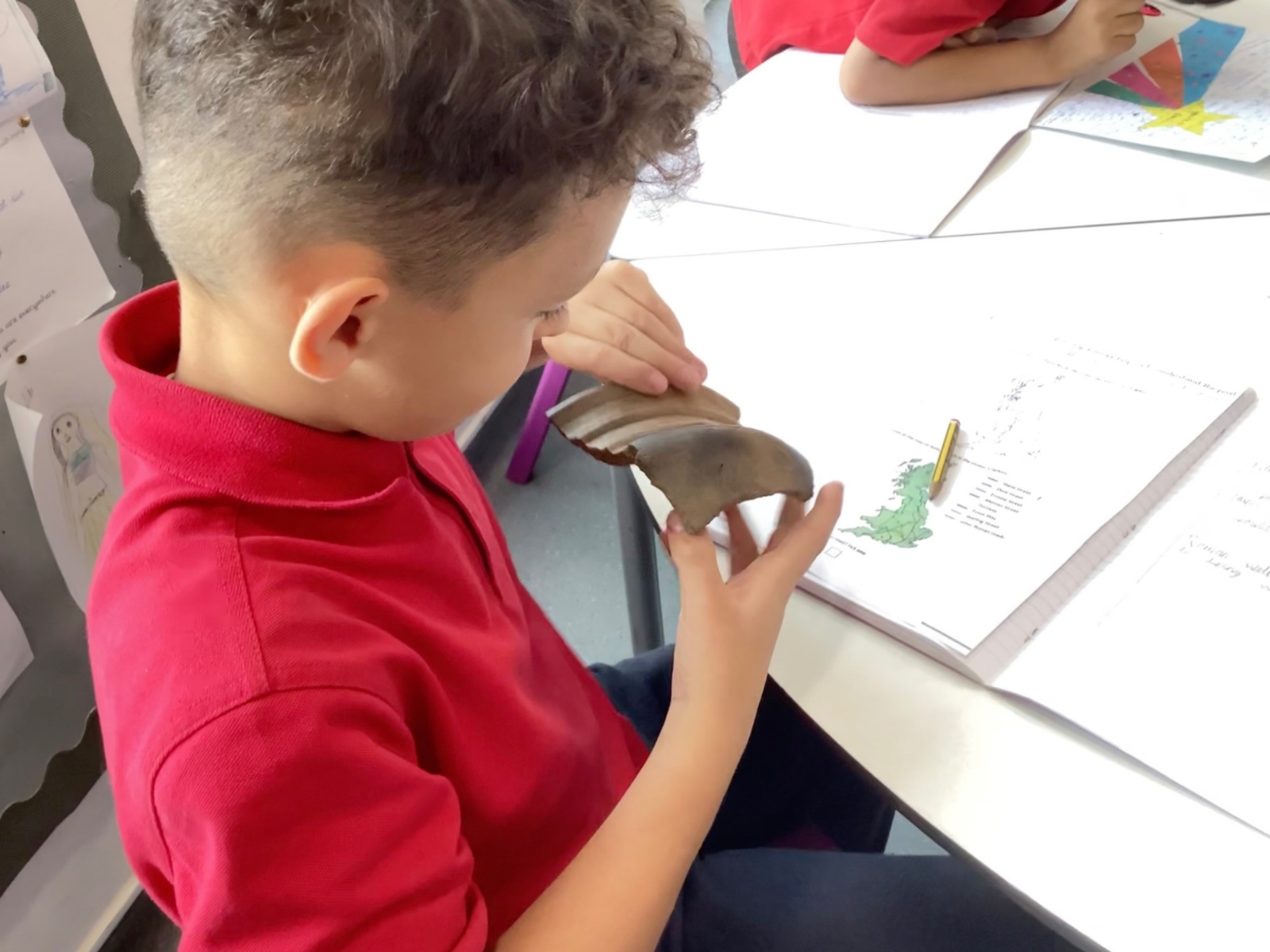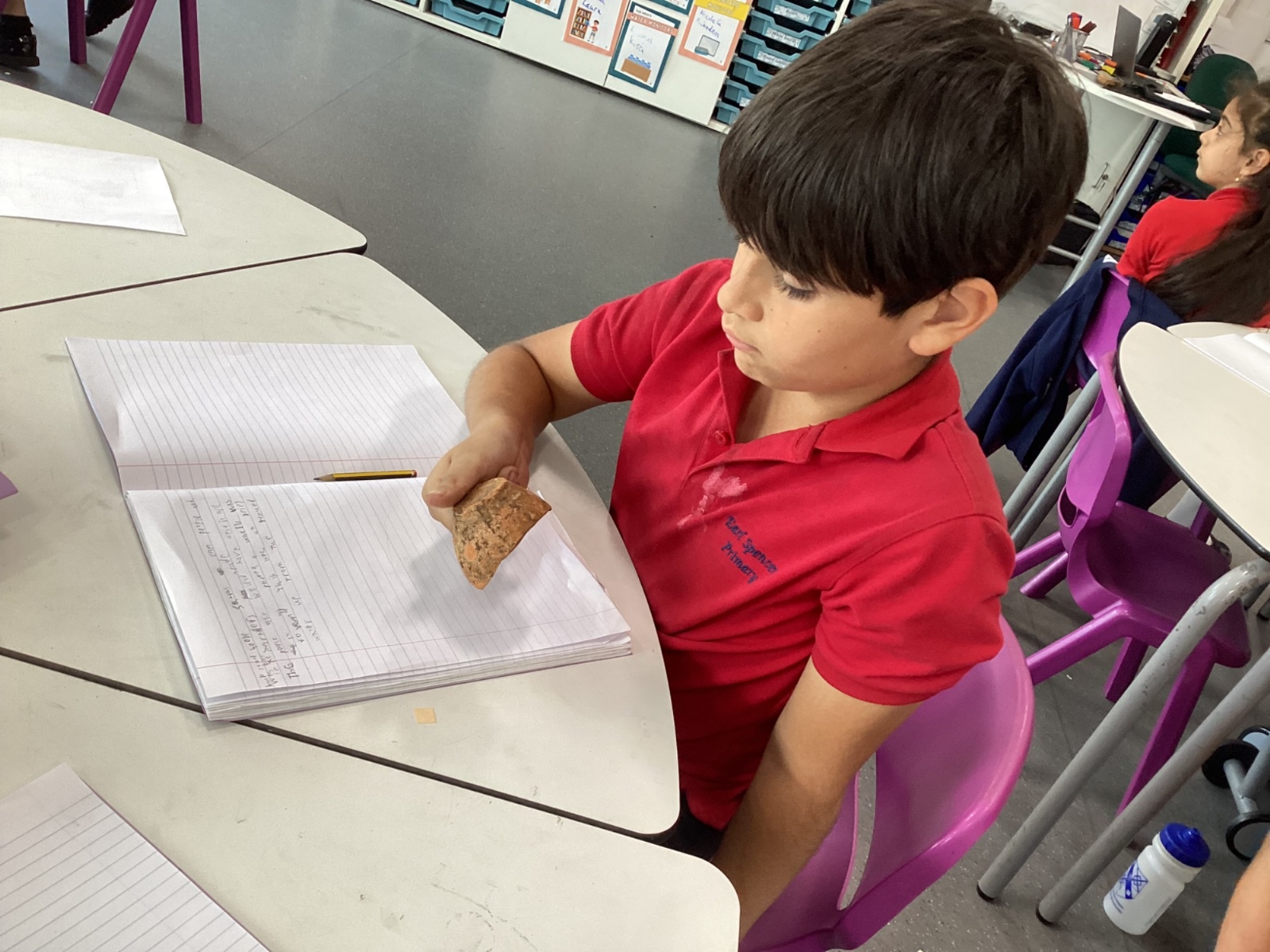 Our visitor talked to our class about some items that had been found at an old Roman town in central England. Pieces of pottery were found and a kiln to fire the pots, Roman coins, some Roman rings and a well that would provide a community with water.
