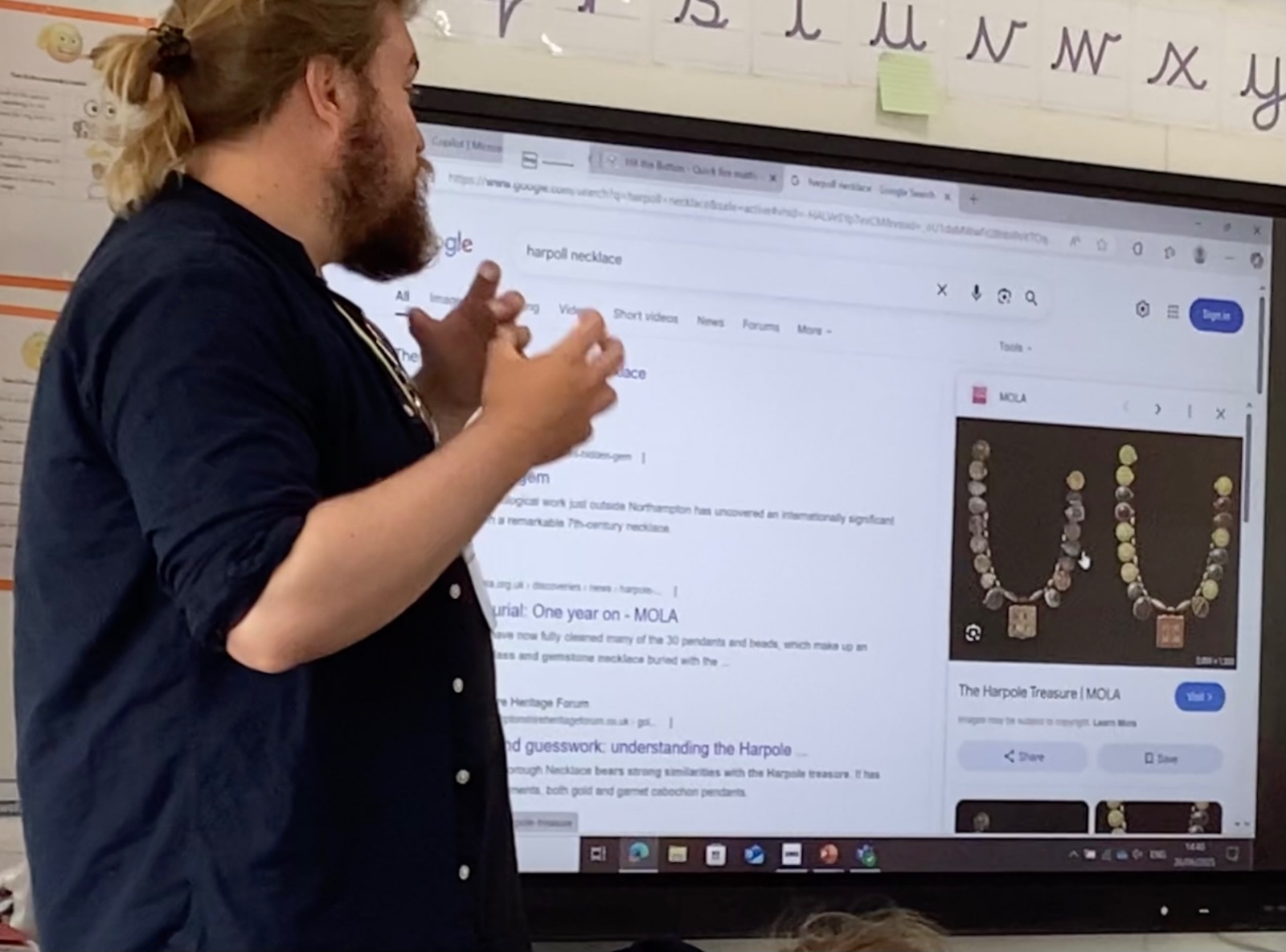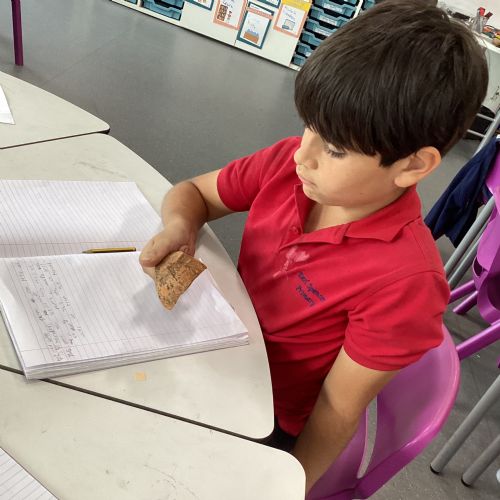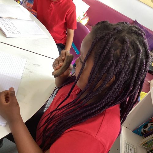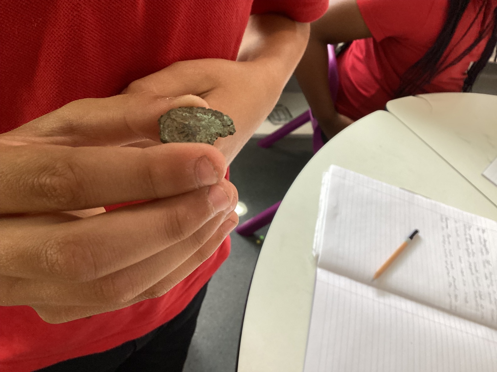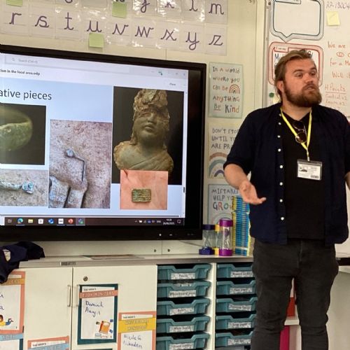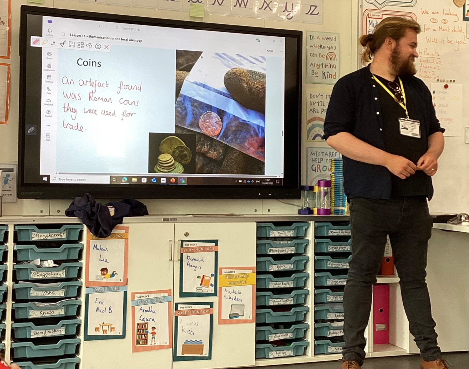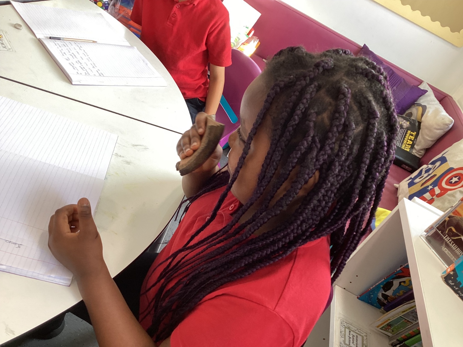 Our visitor talked to our class about some items that had been found at an old Roman town in central England. Pieces of pottery were found and a kiln to fire the pots, Roman coins, some Roman rings and a well that would provide a community with water.