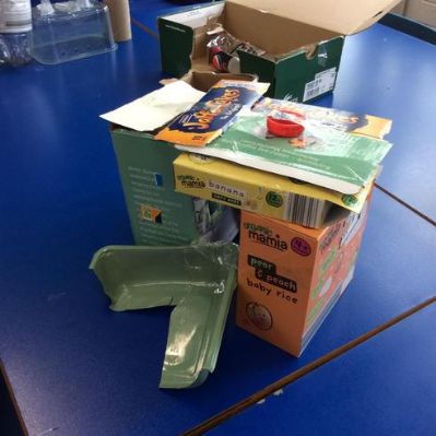 We used junk modelling to build mini bus shelters in our DT lesson.
