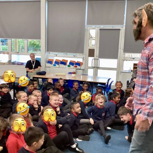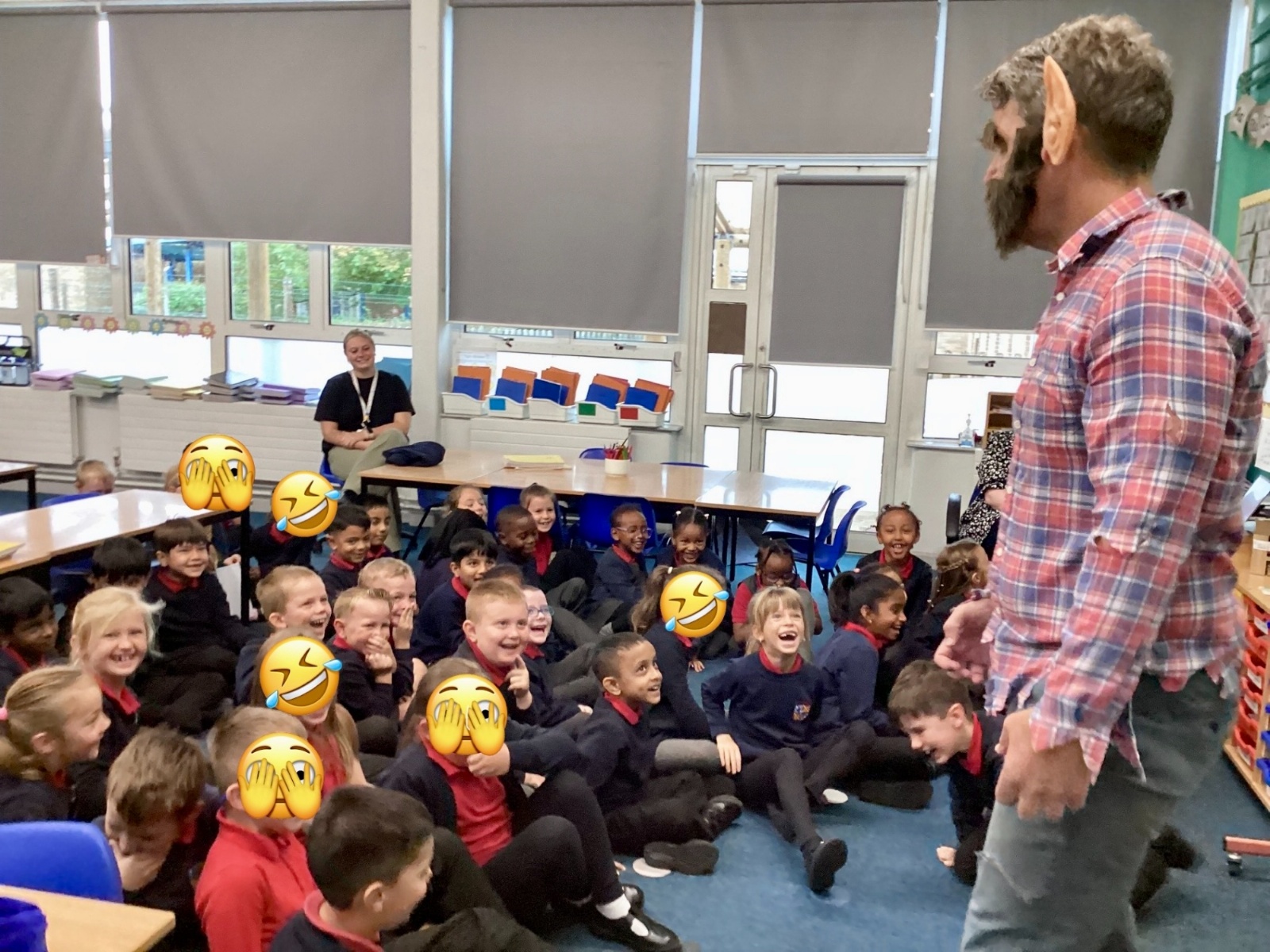 We received a rather scary visit from a giant to inspire our narrative writing. He was particularly grumpy but said he'd offer a golden prize for his favourite piece of writing – a description of him!