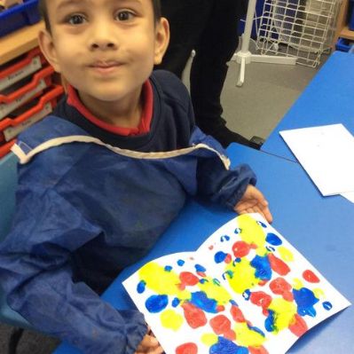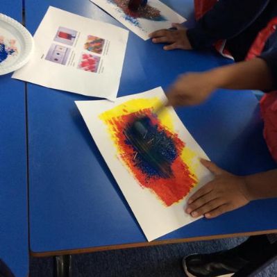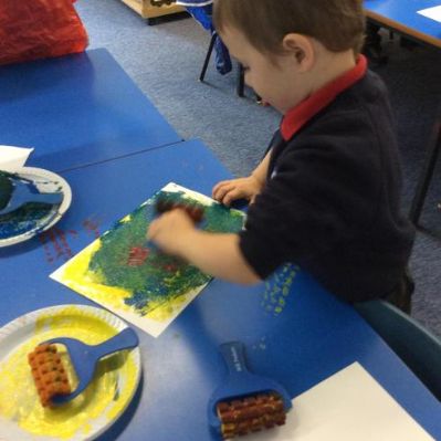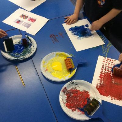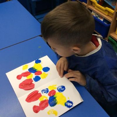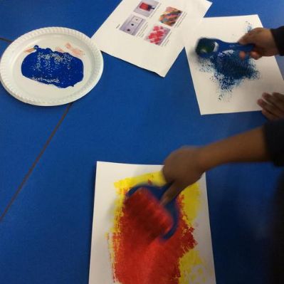 In our art lesson this week we use folding and rolling to mix primary colours.