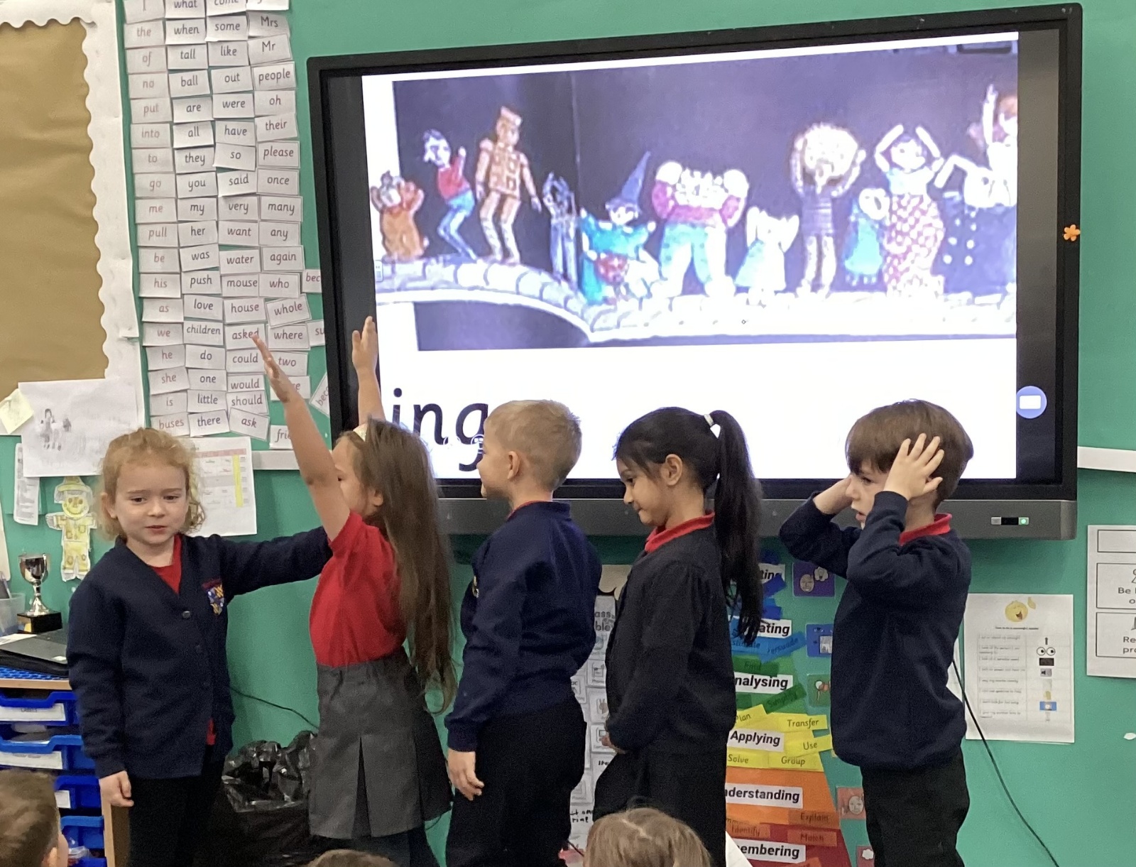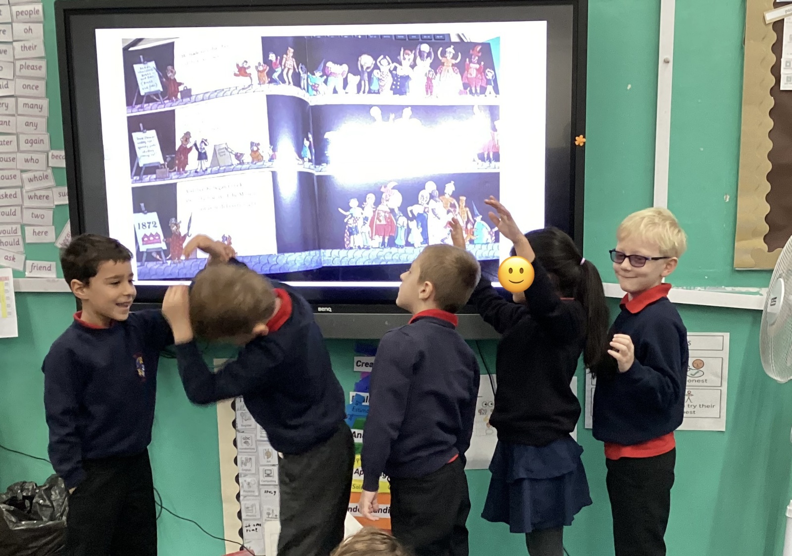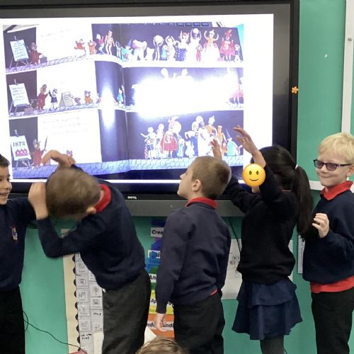 Today we looked at the next page in the story 'Lost in the toy museum' we did some sculpting being the toys from the museum and then thought tapping what we were thinking while we were waiting in line.
