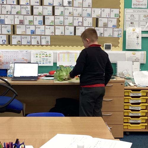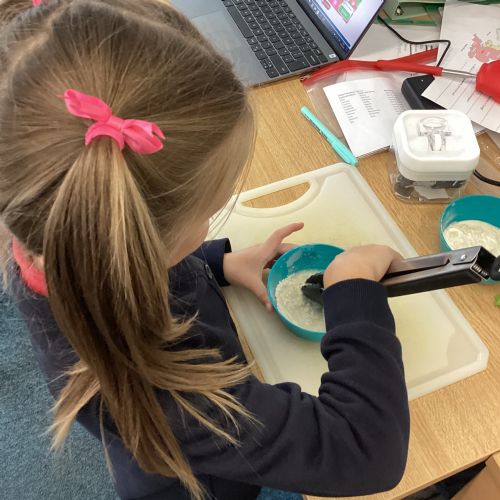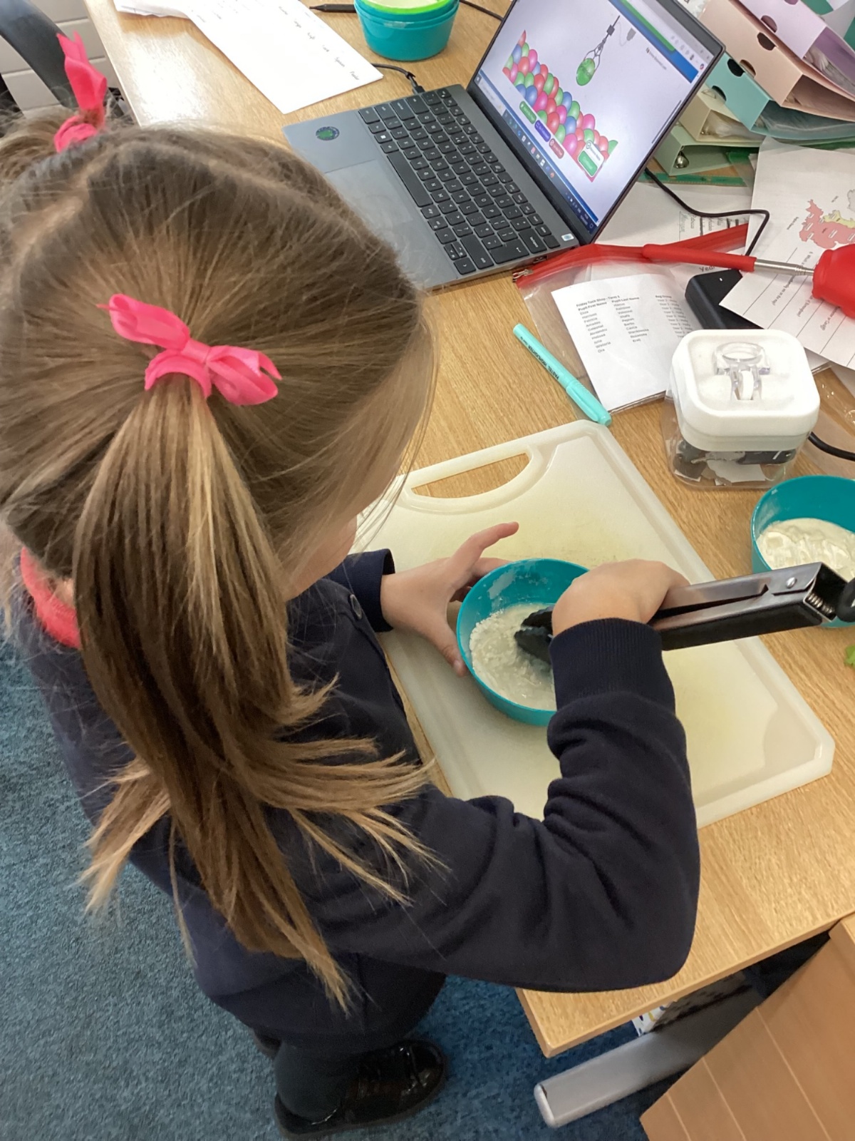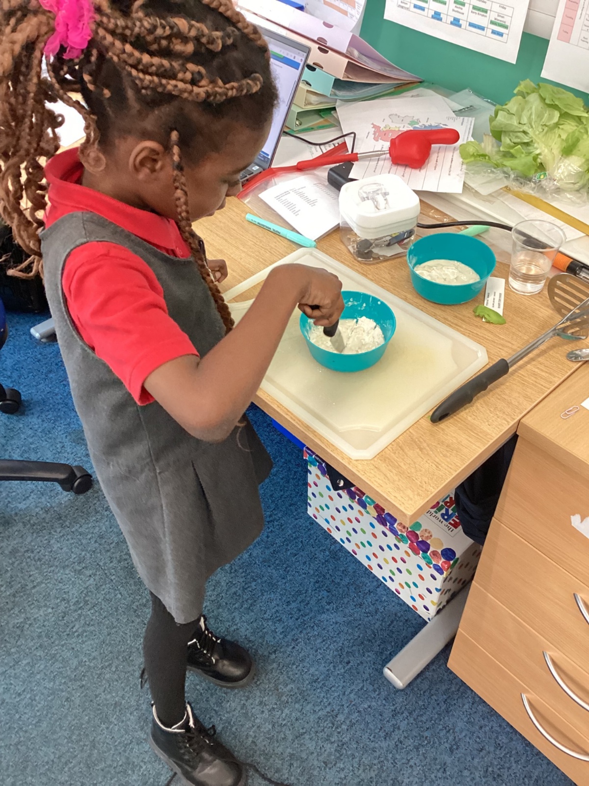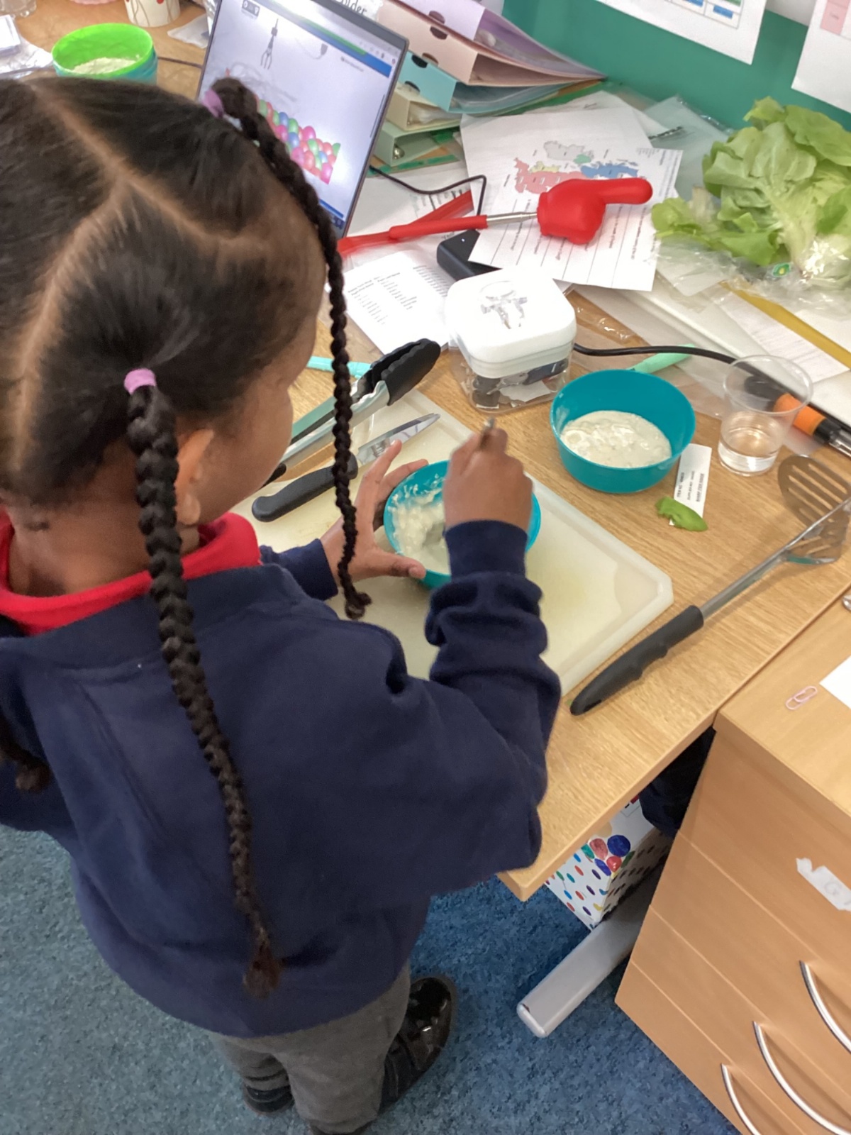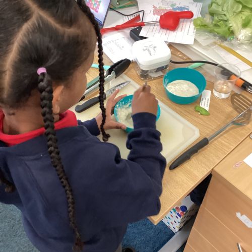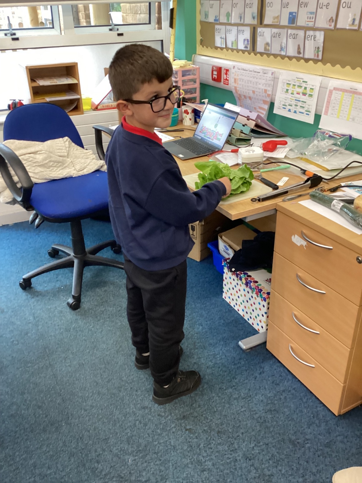 Today in design and technology, the children were experimenting with different kitchen utensils and food. They had to find the most appropriate utensil to prepare the item of food.