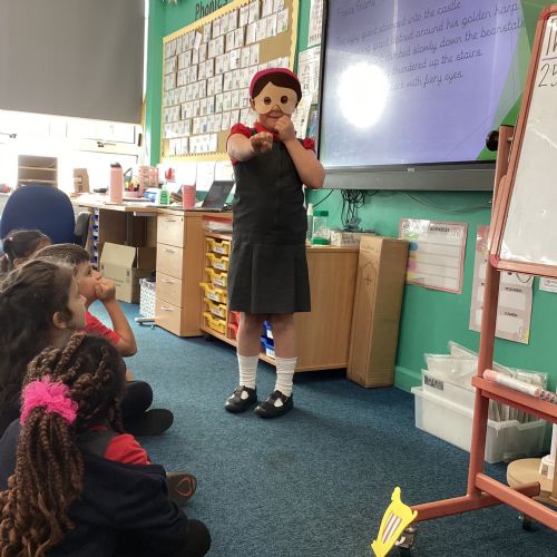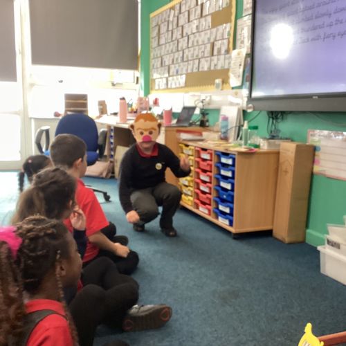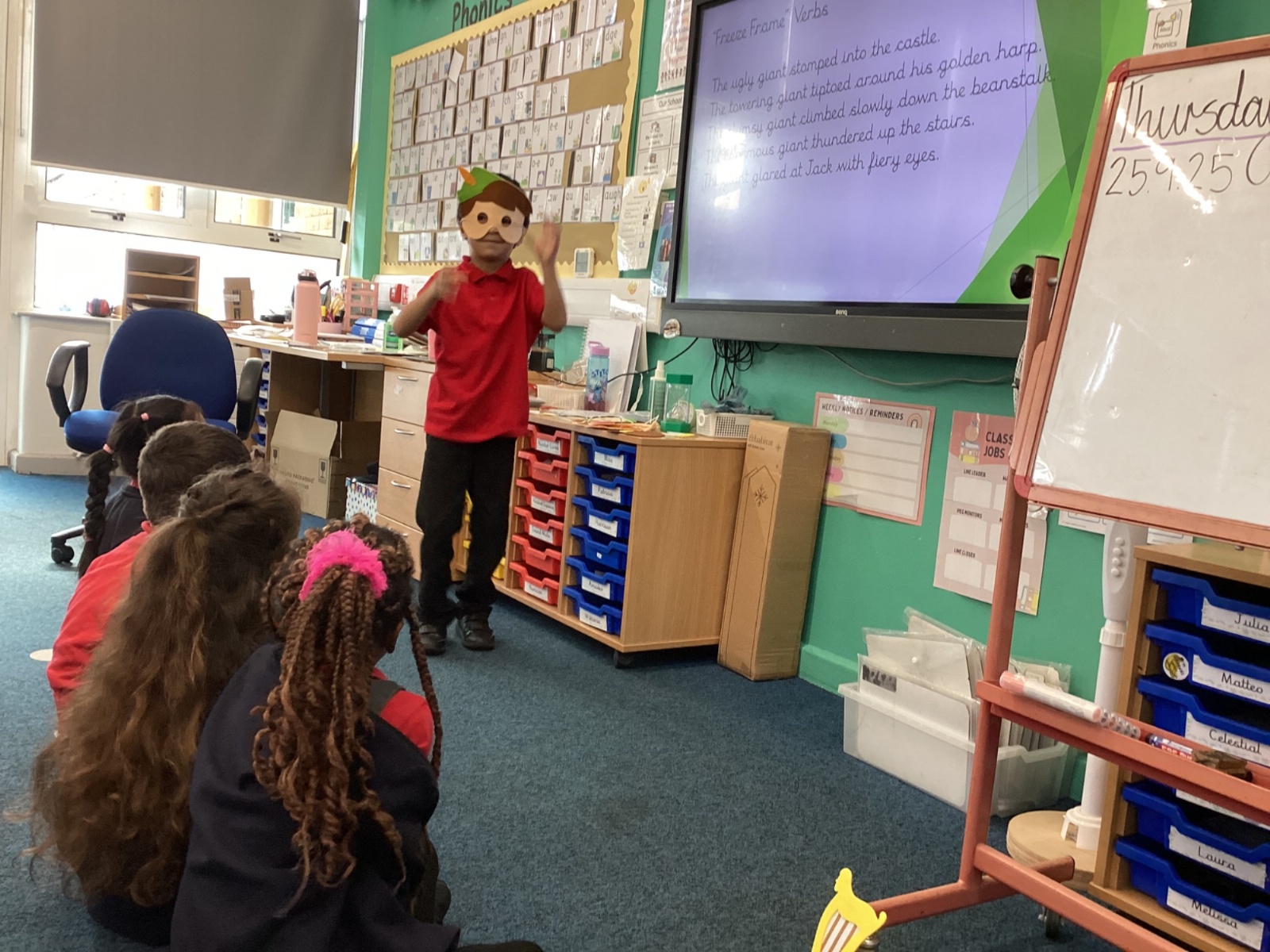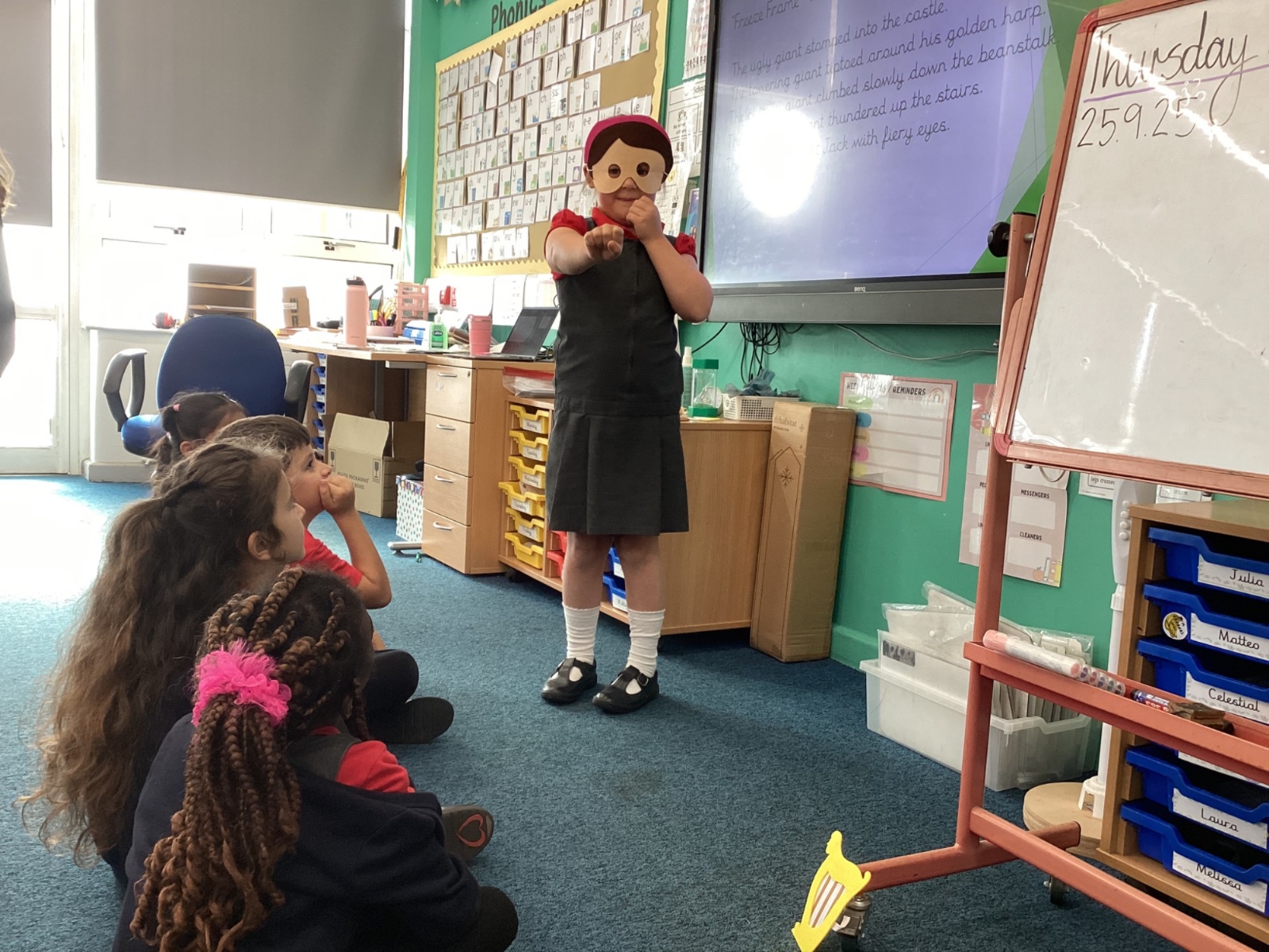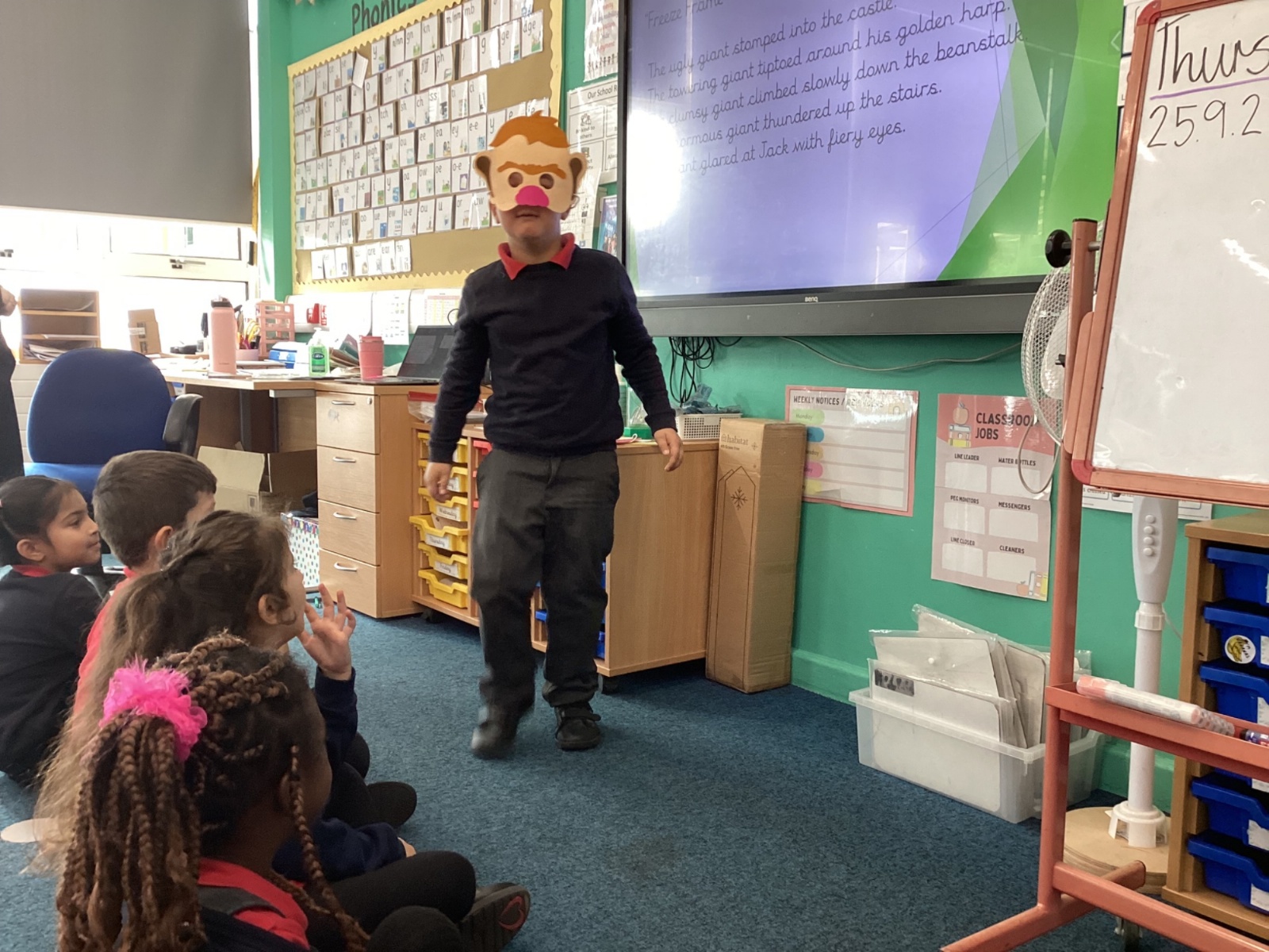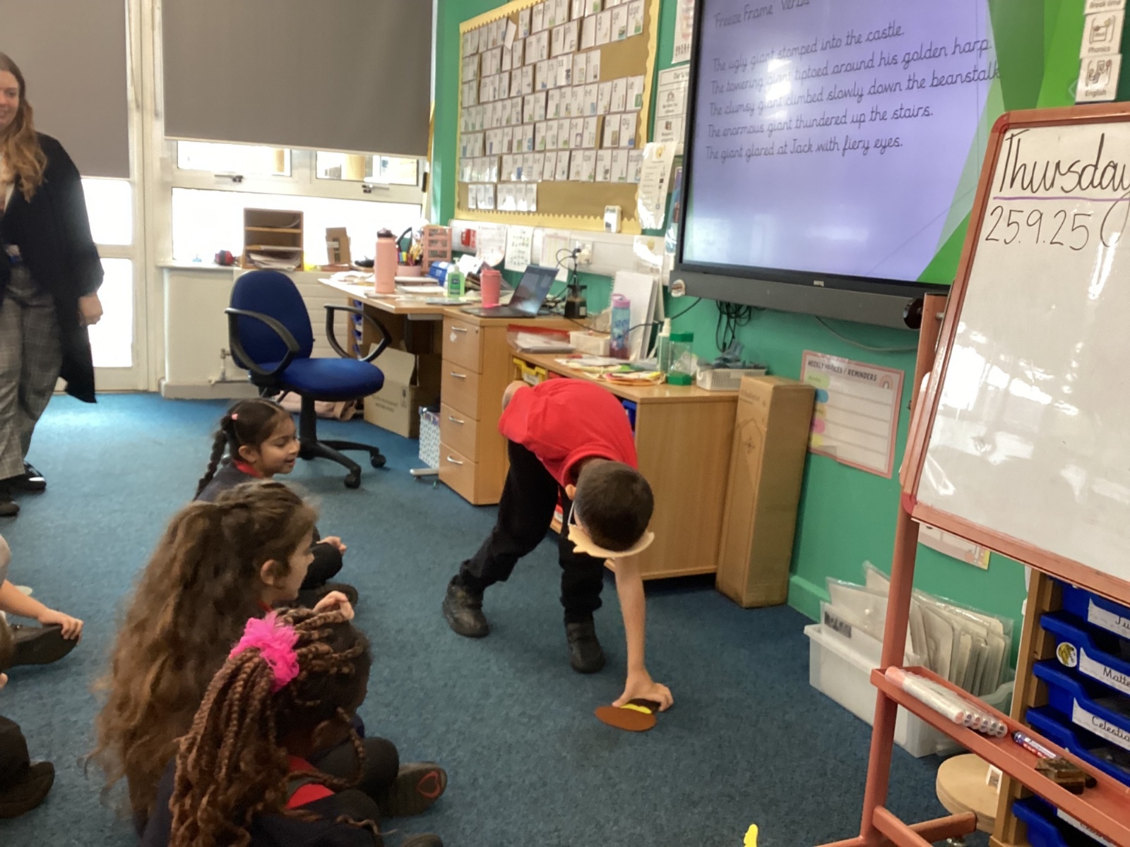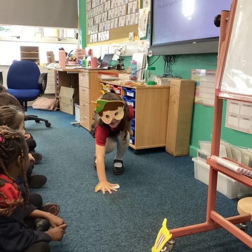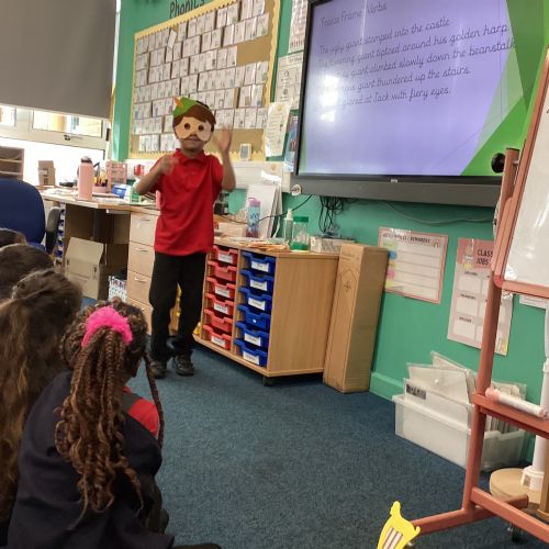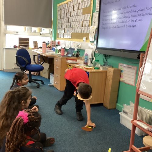 Today in English the children were doing freeze frames from Jack and the beanstalk.