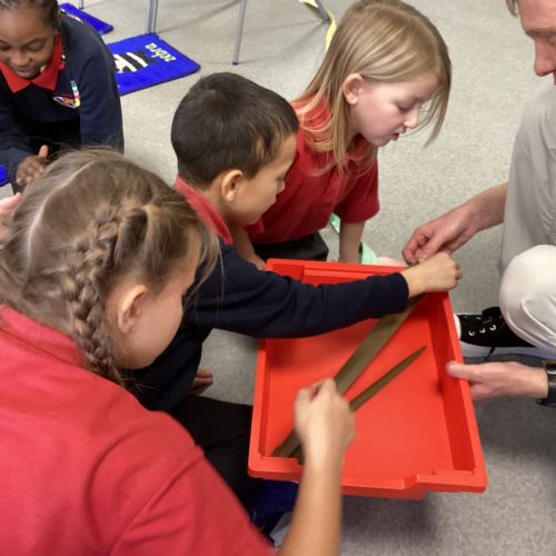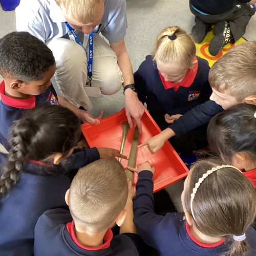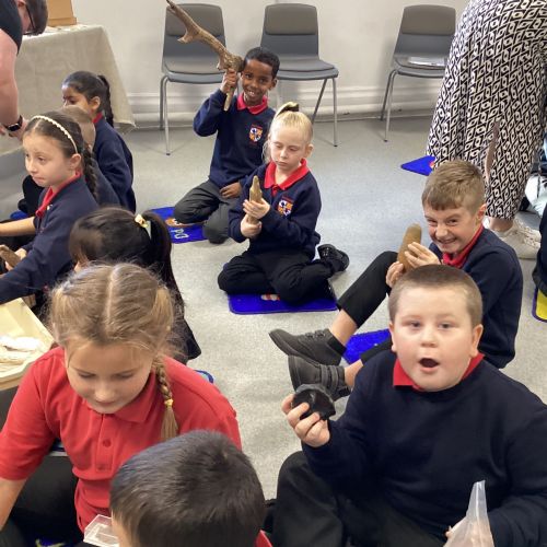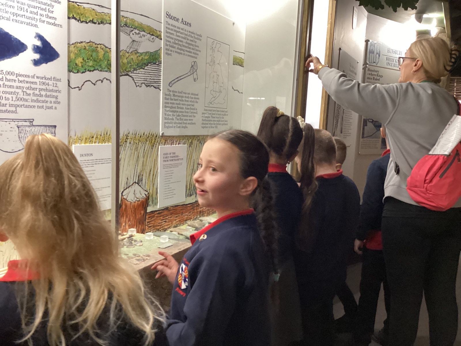 Today year 3 have walked to the museum in Northampton to learn more about the Stone Age, Bronze Age and the Iron Age. They all looked around at the historical artefacts that had been found around our local area. They were also able to hold some pieces from each of these historical eras. Everyone was especially excited to have touched a real woolly mammoth tusk! A great day had by all !