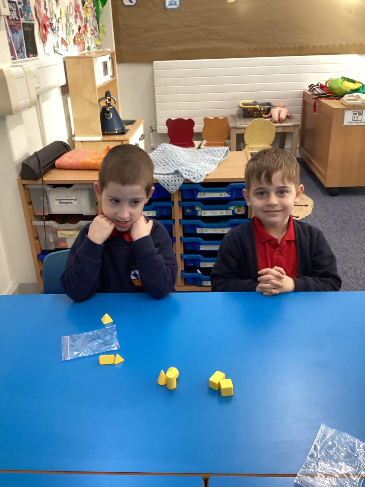 We have been learning the names of 3d shapes and thinking about how we can sort them.