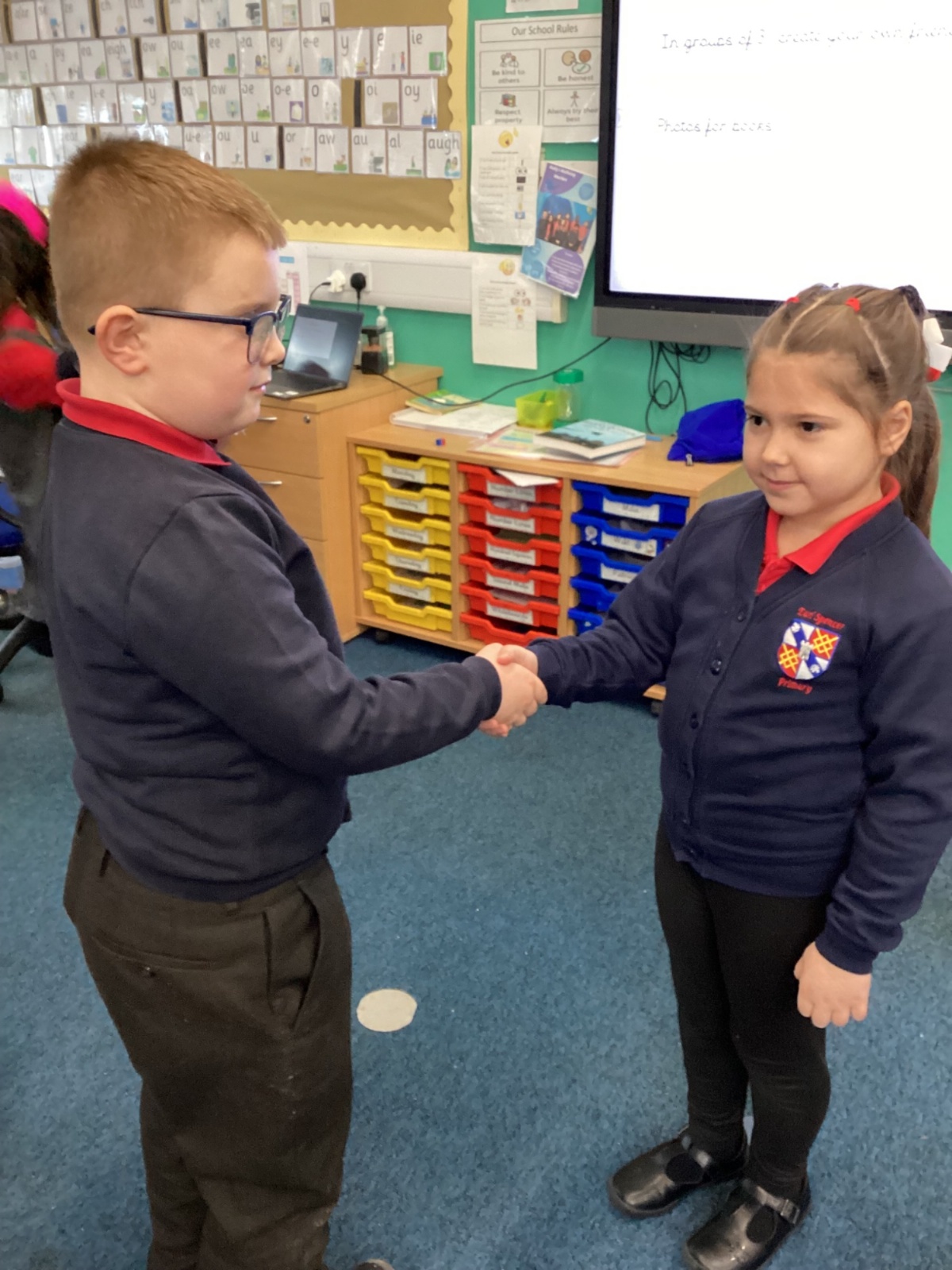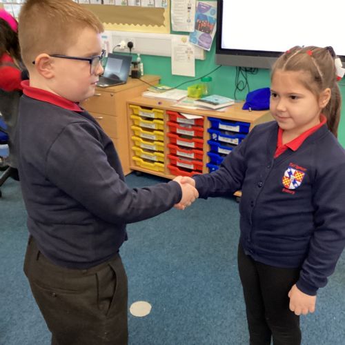 Today in PSHE, the children were learning how people greet each other in different cultures. They then created their own greetings which were shared with the rest of the class.