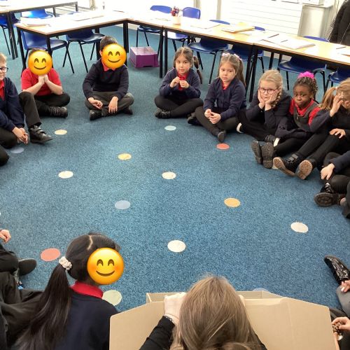For English today, children have started to look into a new book as their inspiration for this half-term. Before reading the book, the children explored an immersive box which was inspired by the book to predict what the book might be about.