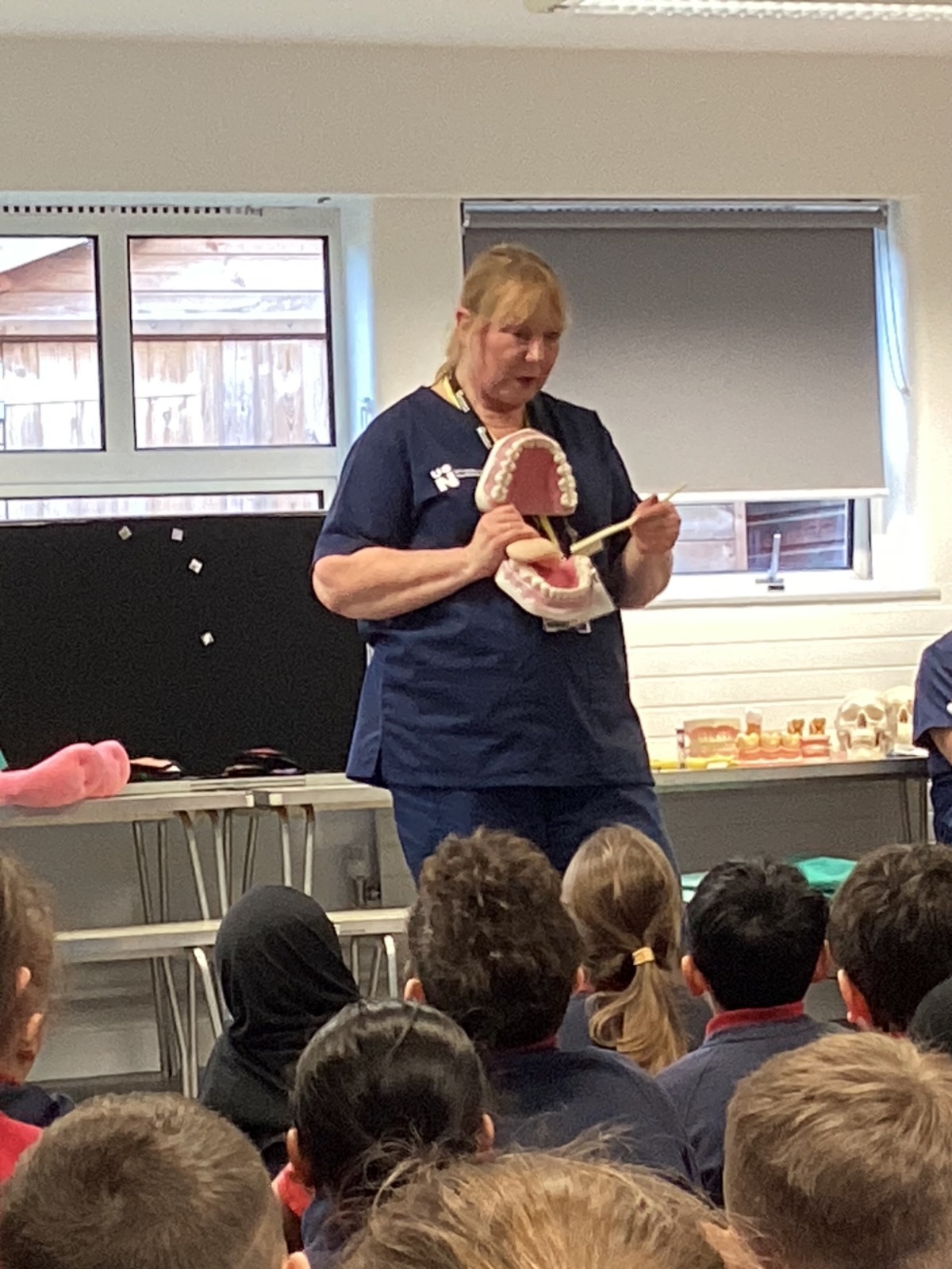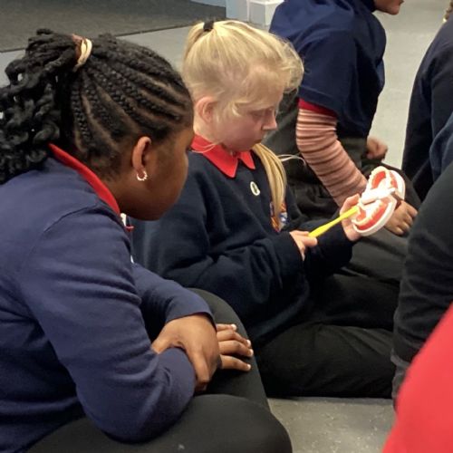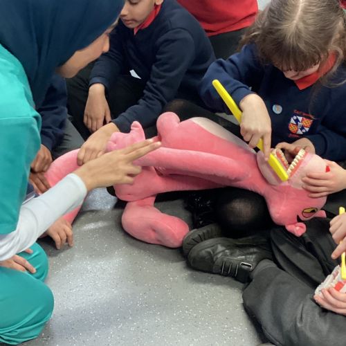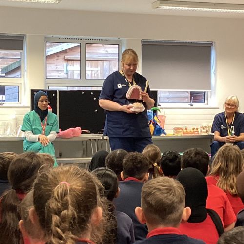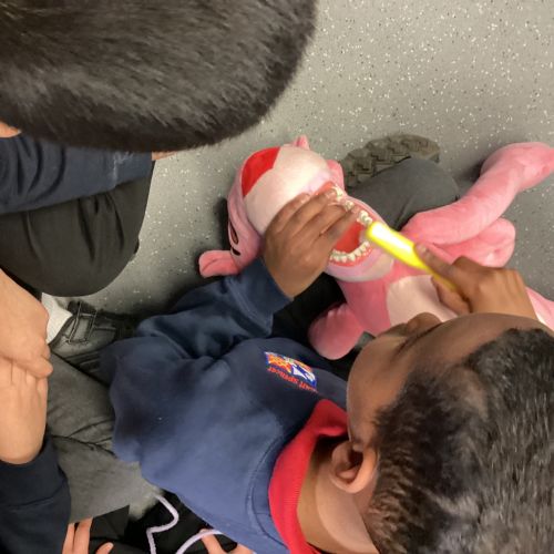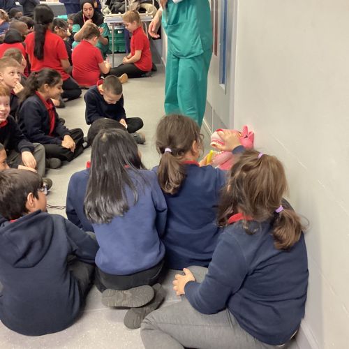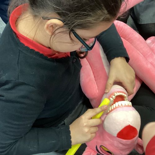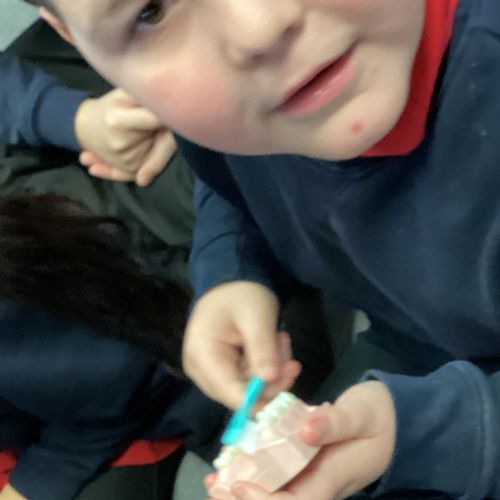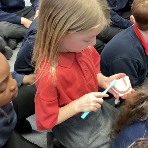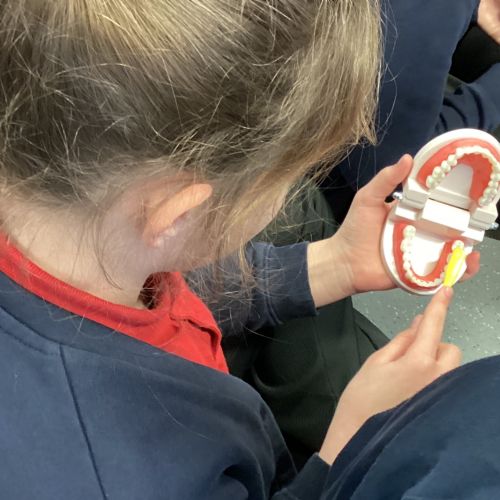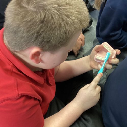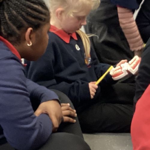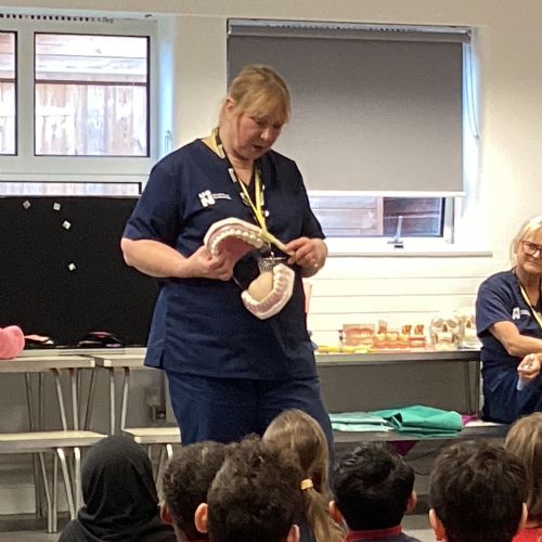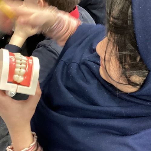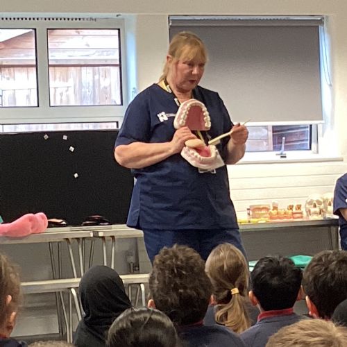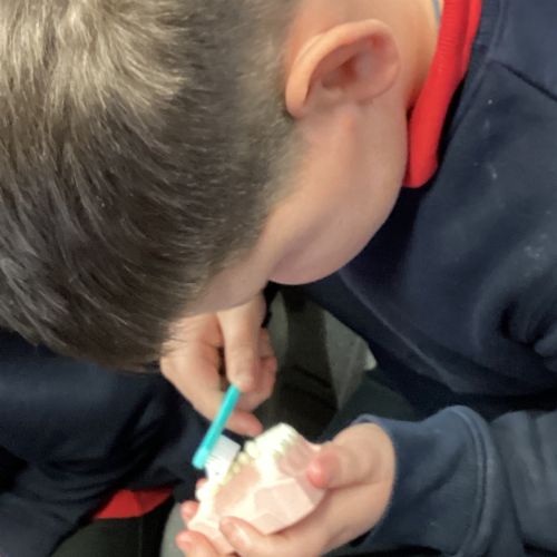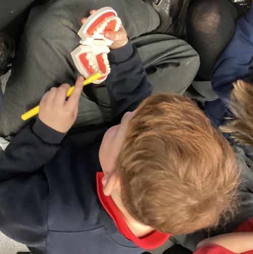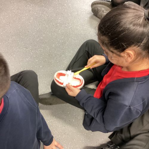 We had a visit from some dental nurses and dental students to share with us the correct way to clean our teeth and what food and drinks that are either good or bad for our teeth.