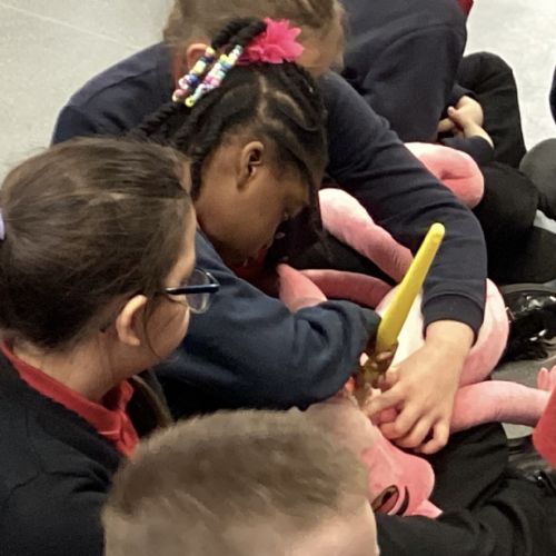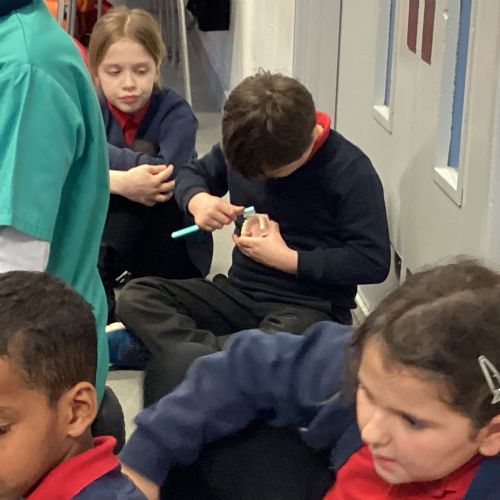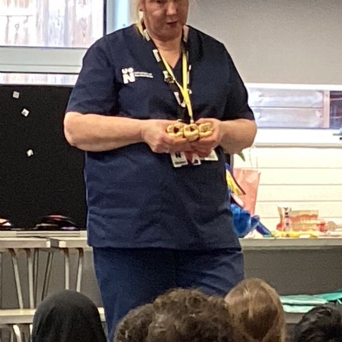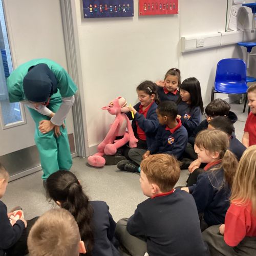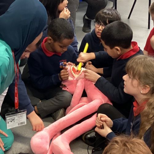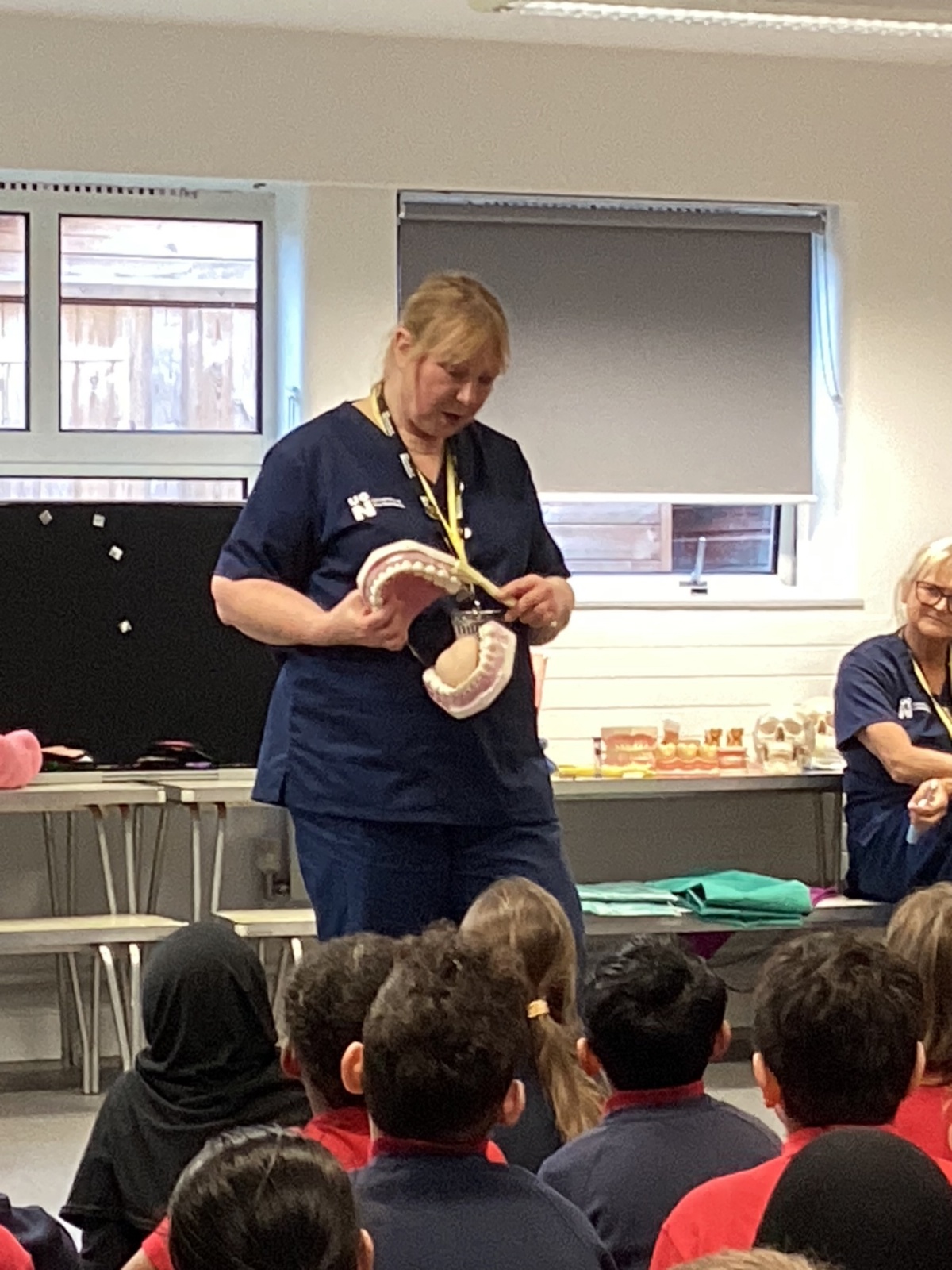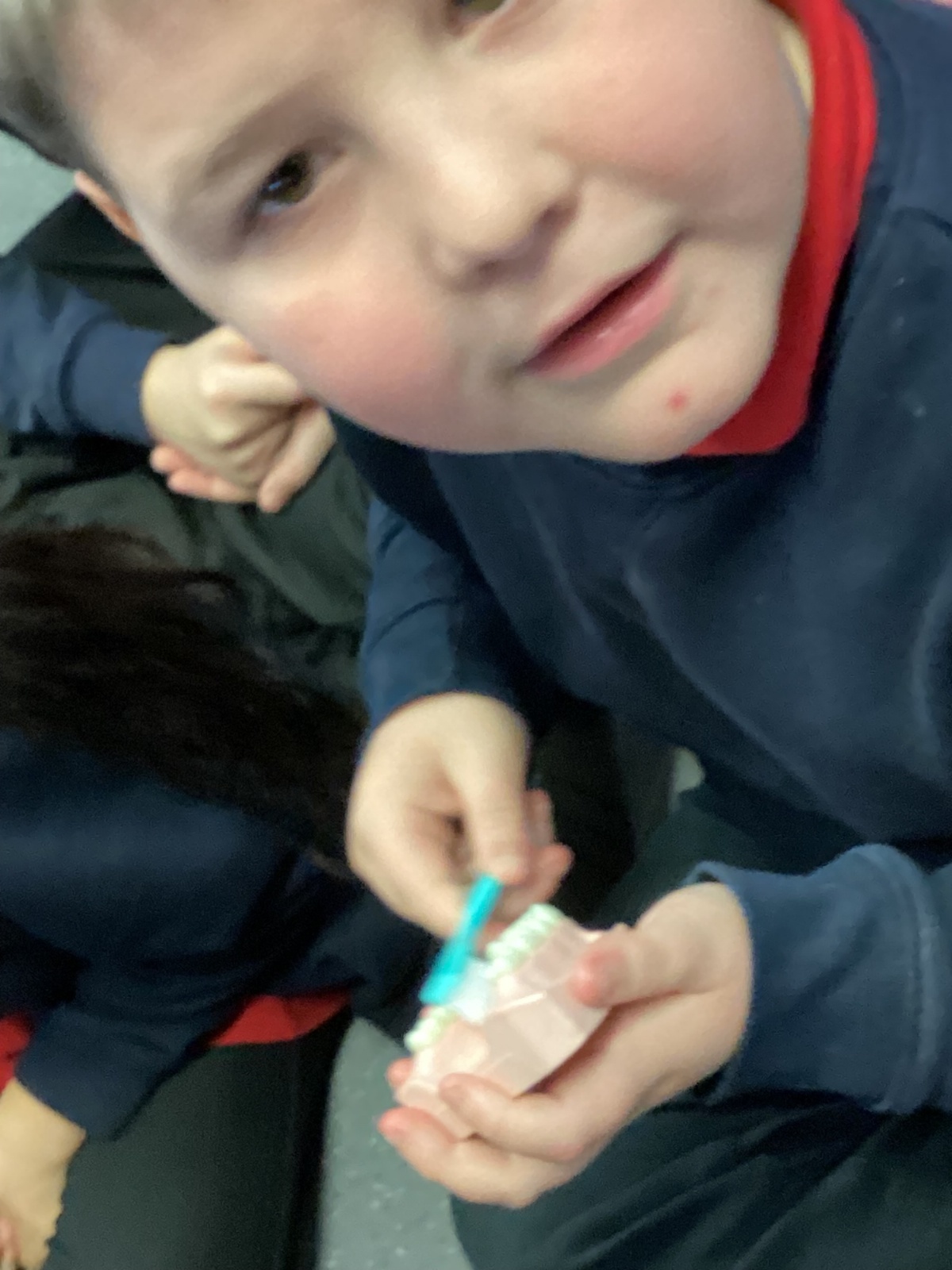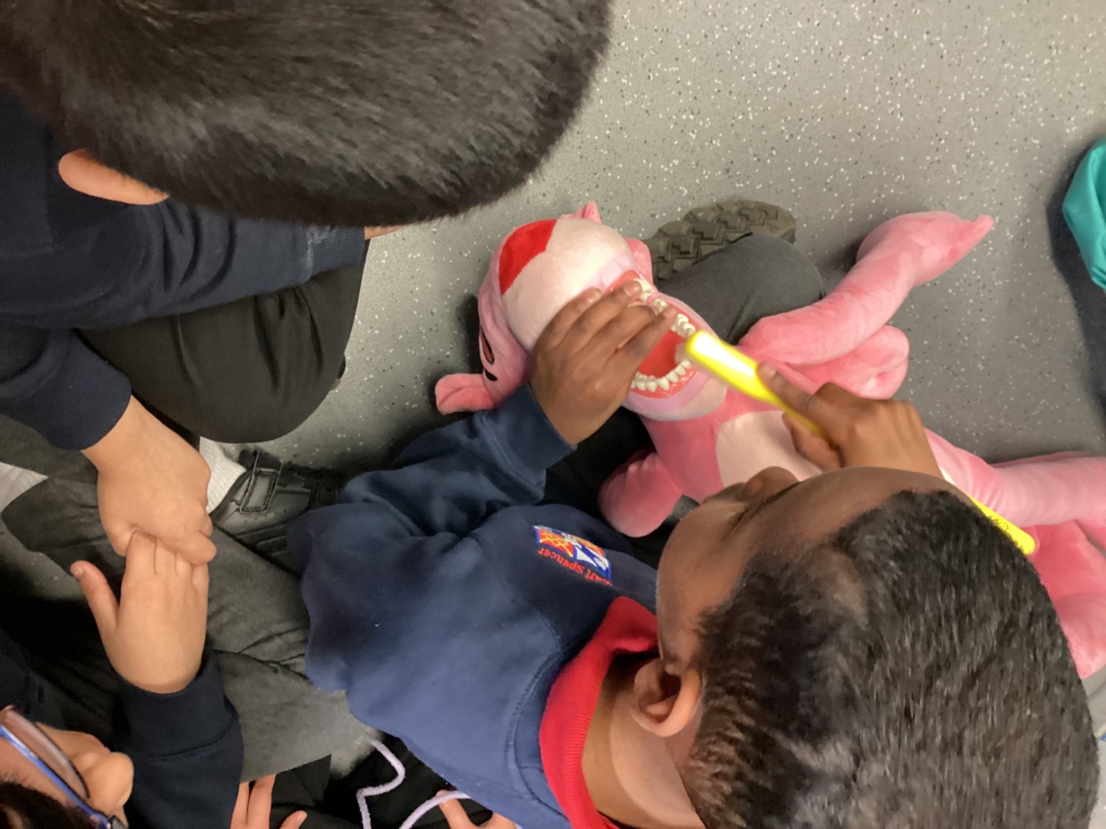 We had a visit from some dental nurses and dental students to share with us the correct way to clean our teeth and what food and drinks that are either good or bad for our teeth.