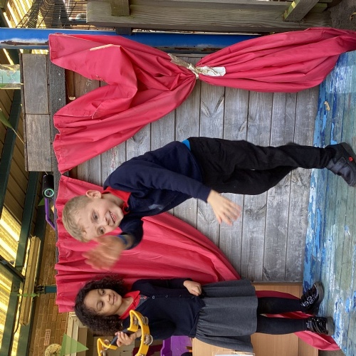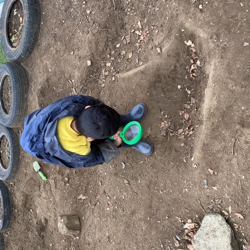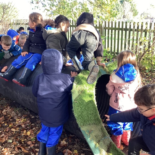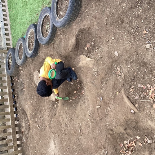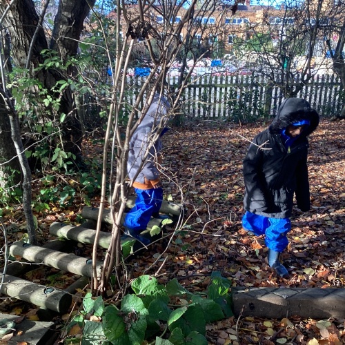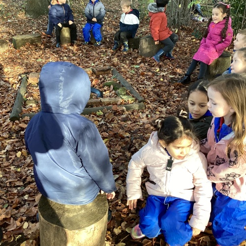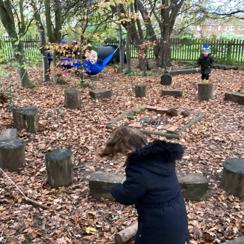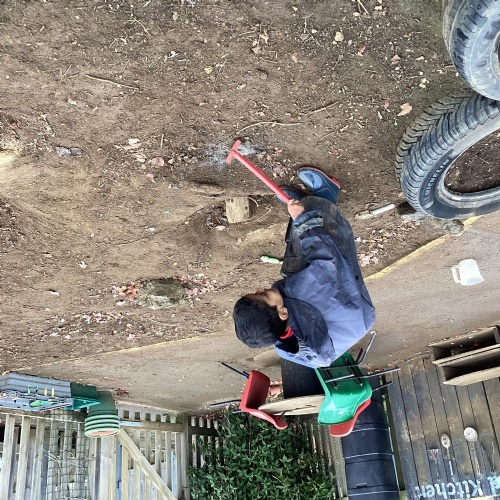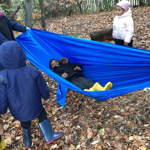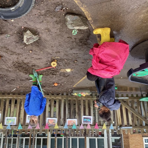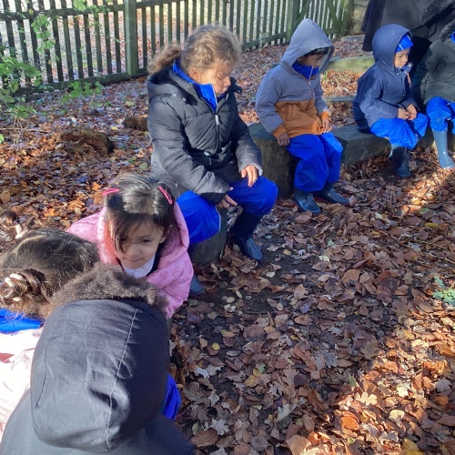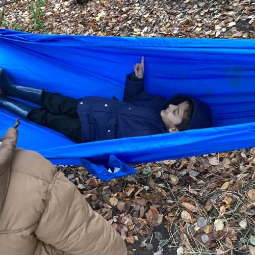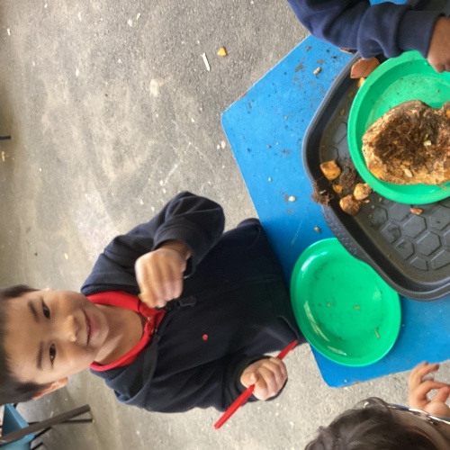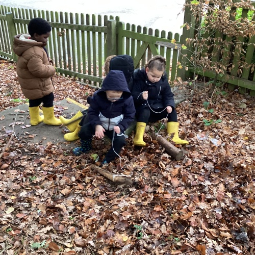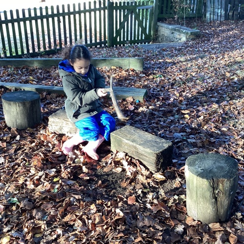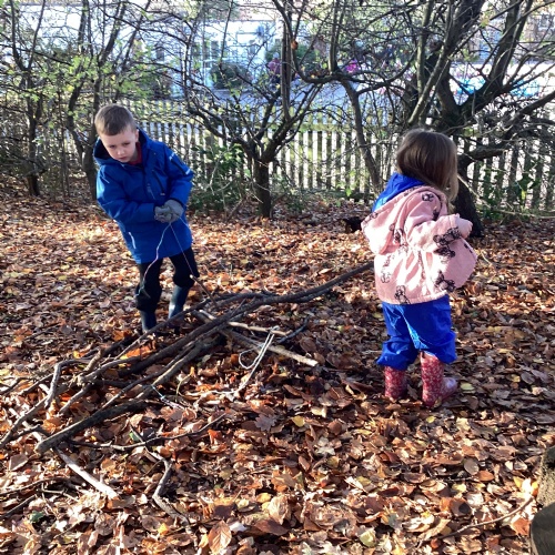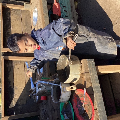 We love our weekly Muddy Monday sessions. Here we are having a great time in Forest School...