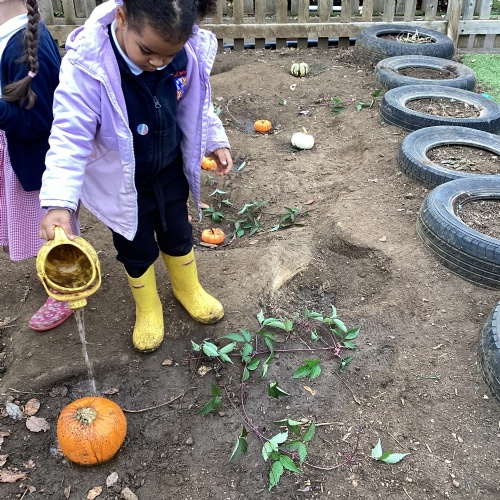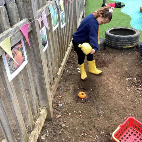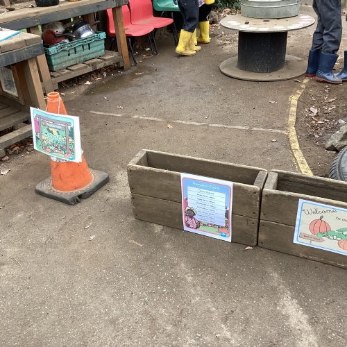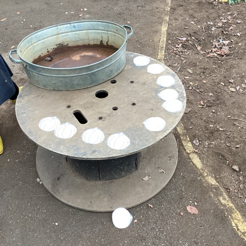 We had a great time exploring the pumpkin patch in our mud kitchen.