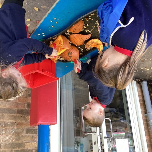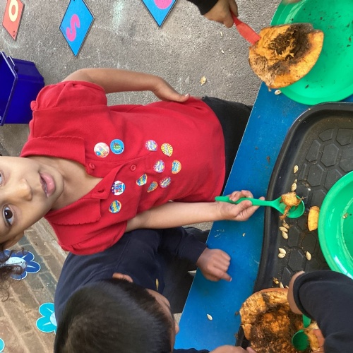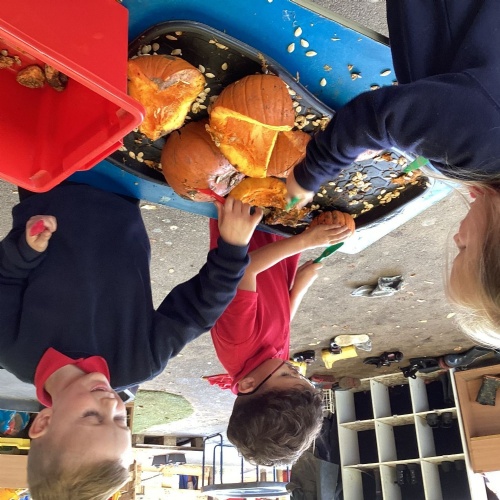 Exploring pumpkins! We opened up the pumpkins to look inside and then we made pumpkin soup!